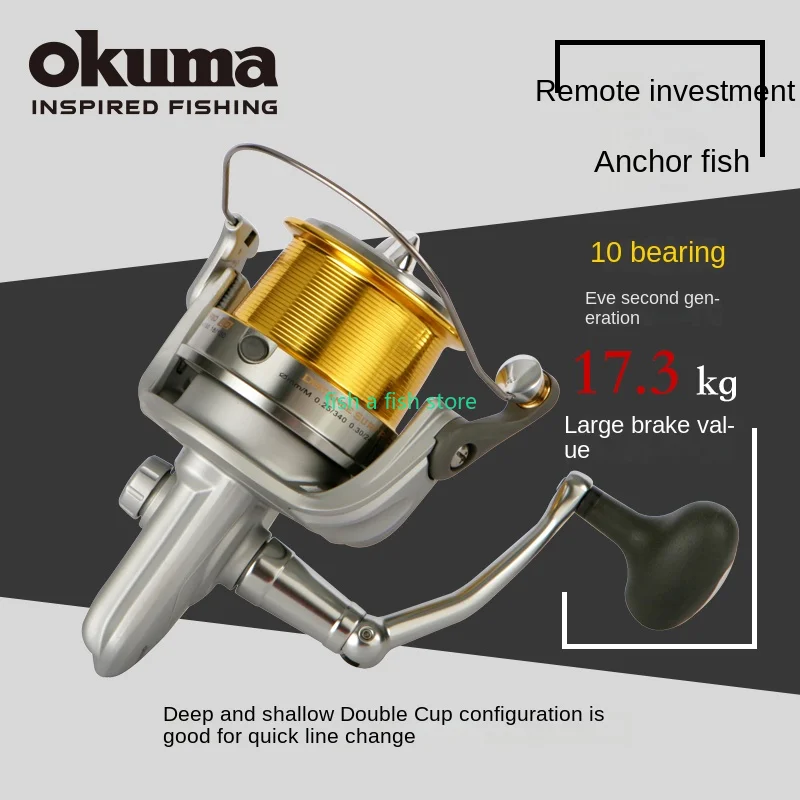 Okuma-carrete de pesca giratorio de largo alcance, surfear Pro