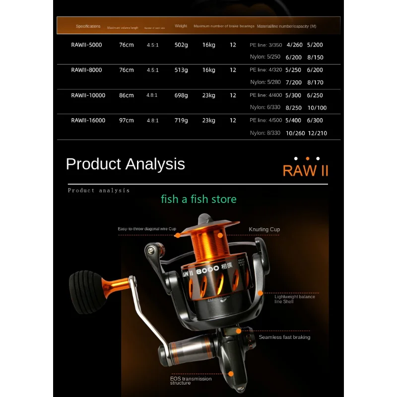 Okuma-carrete de pesca giratorio RAWII, carrete especial de Metal para pesca en el mar