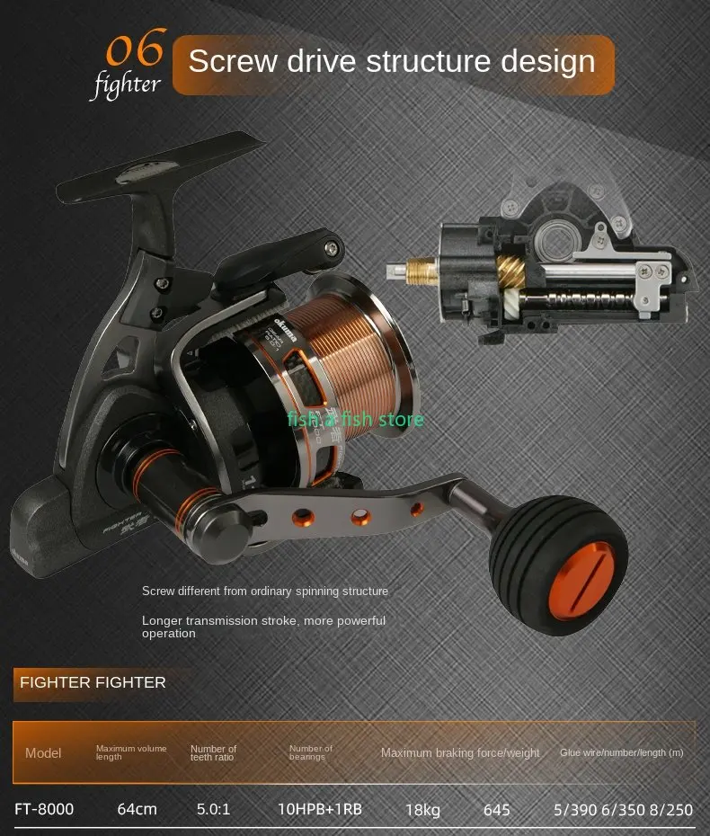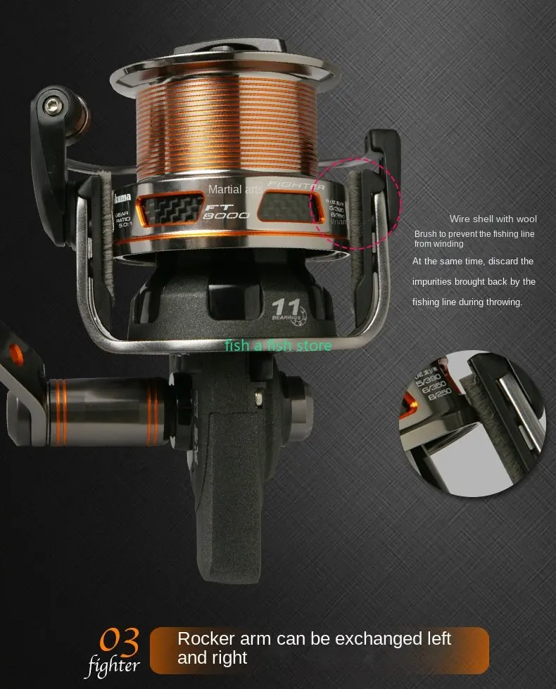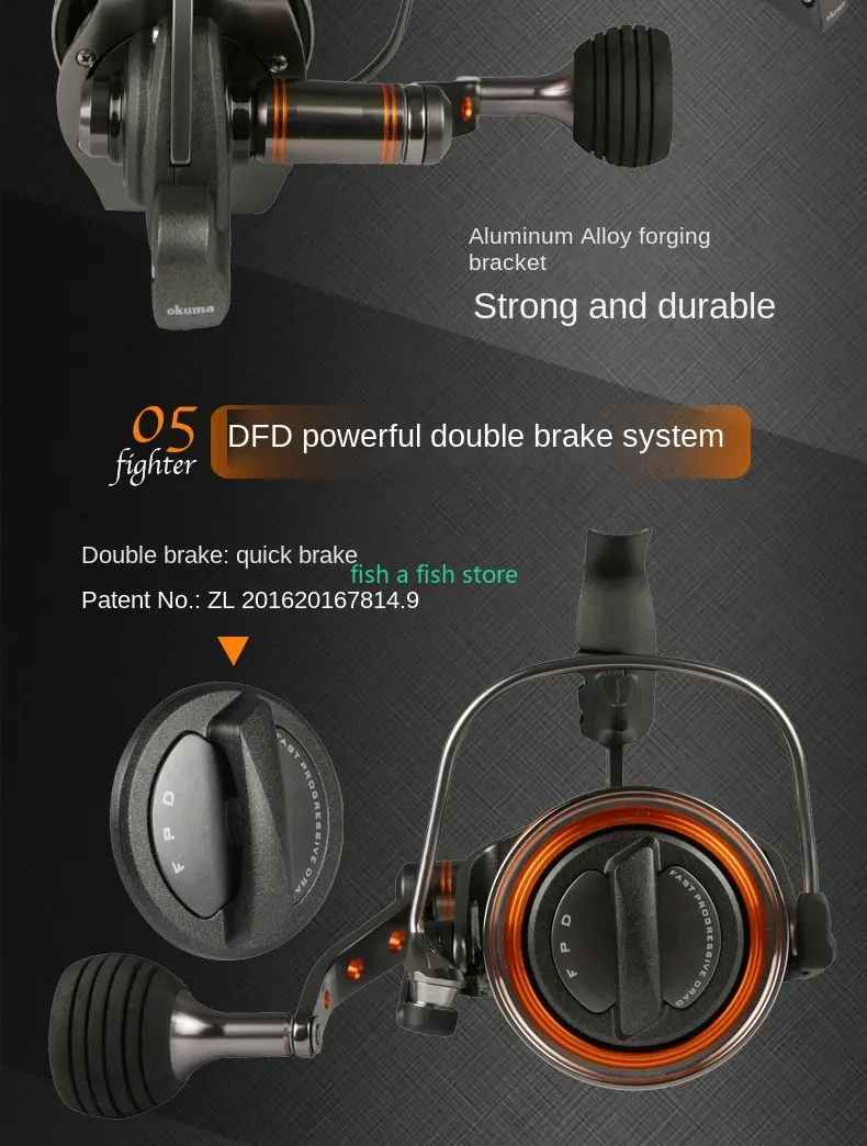 Okuma FIGHTER 8000-carrete de pesca giratorio de fundición larga, pesca en agua salada, Surf