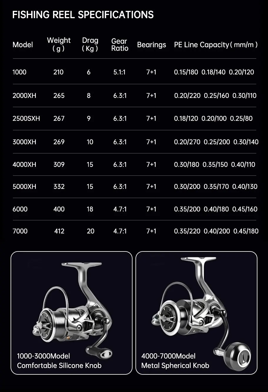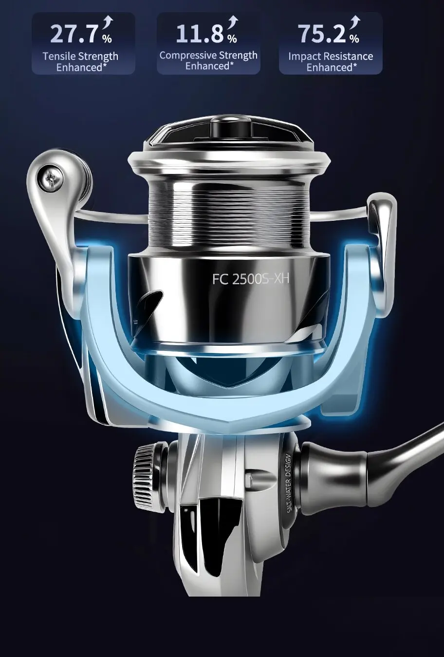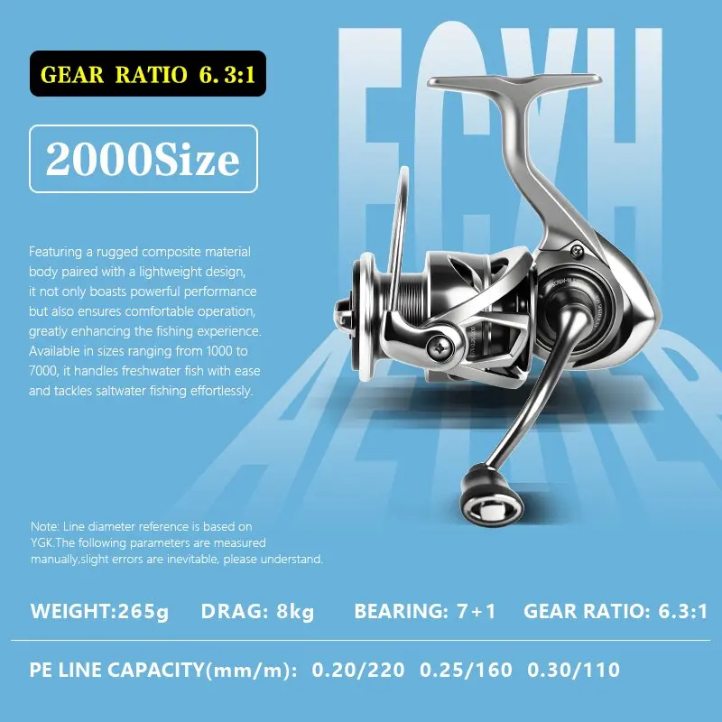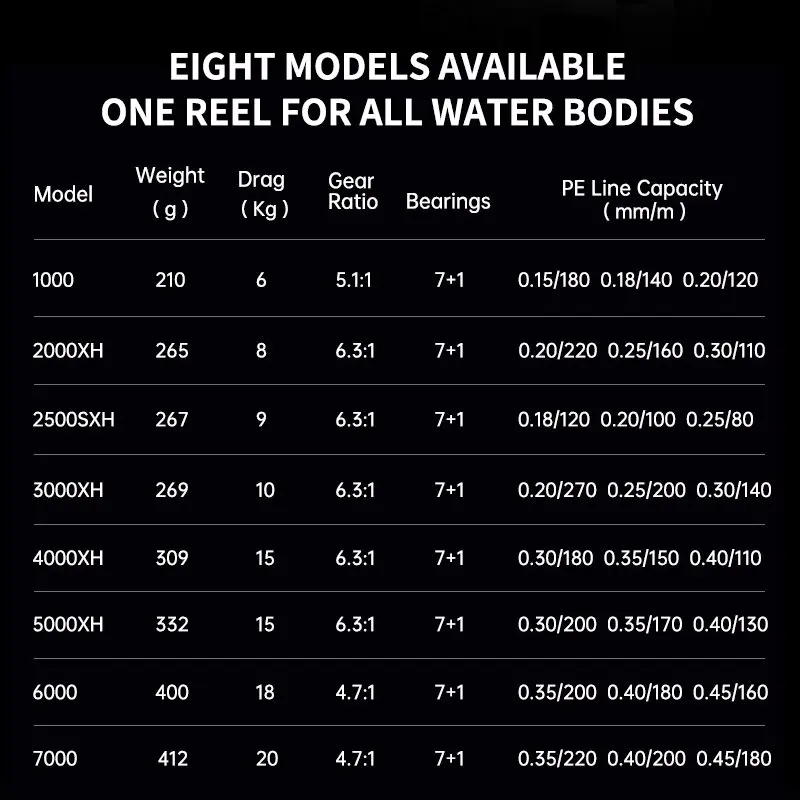 Equipado con rodamientos 7+1 BB, este carrete ofrece un funcionamiento suave y durabilidad en ambientes de agua salada.
