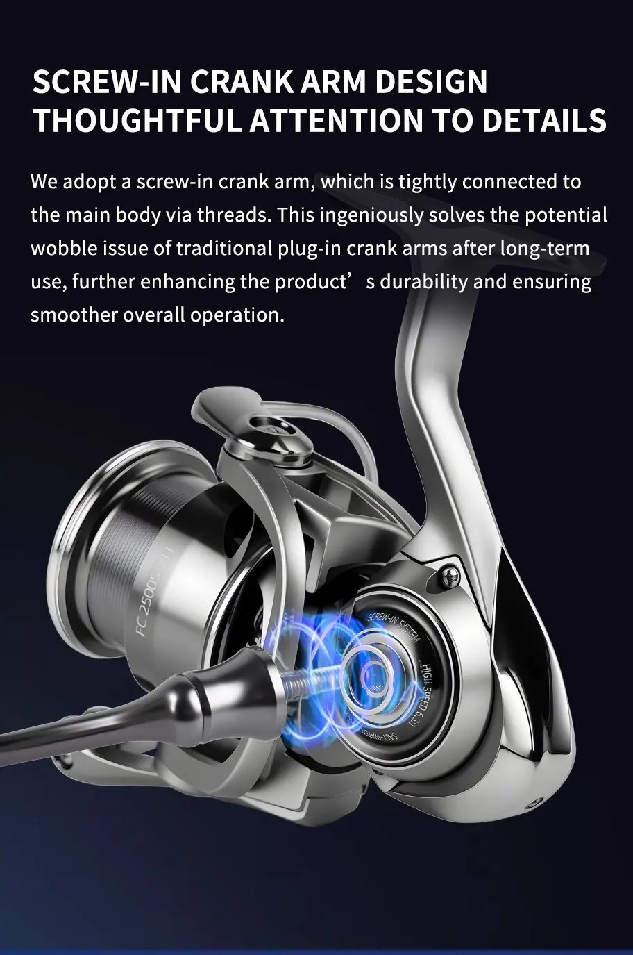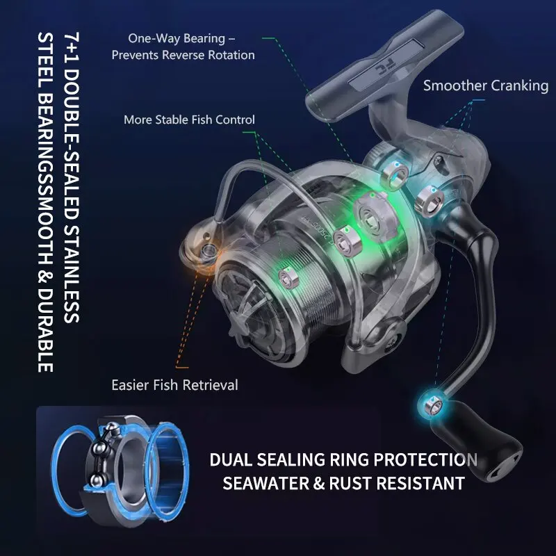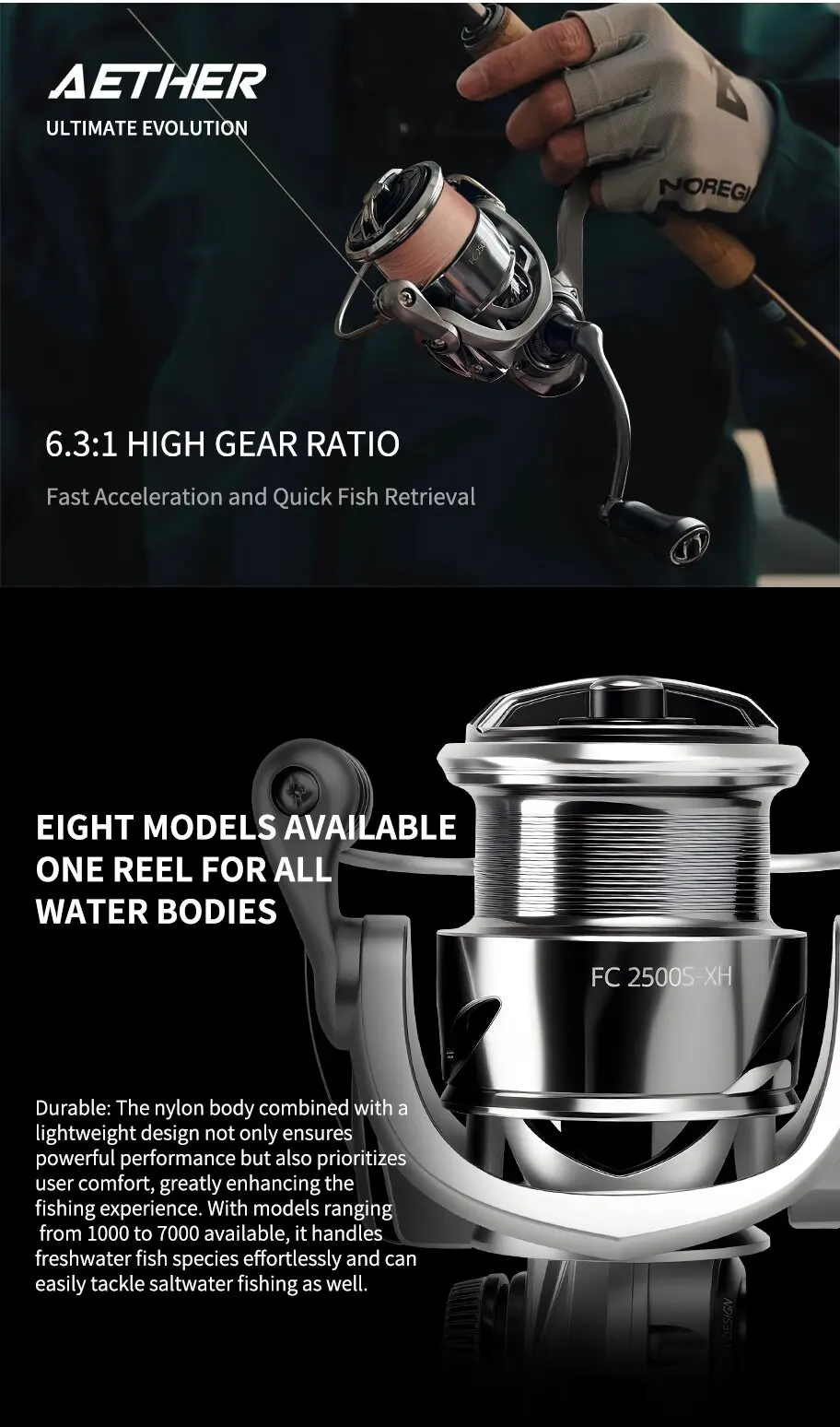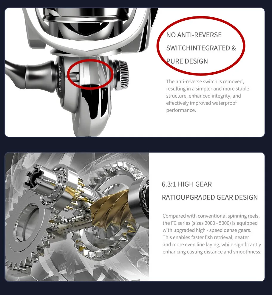 La dirección ambidiestra de la mano permite un uso cómodo tanto por los pescadores diestros como zurdos, mejorando la versatilidad en el agua.