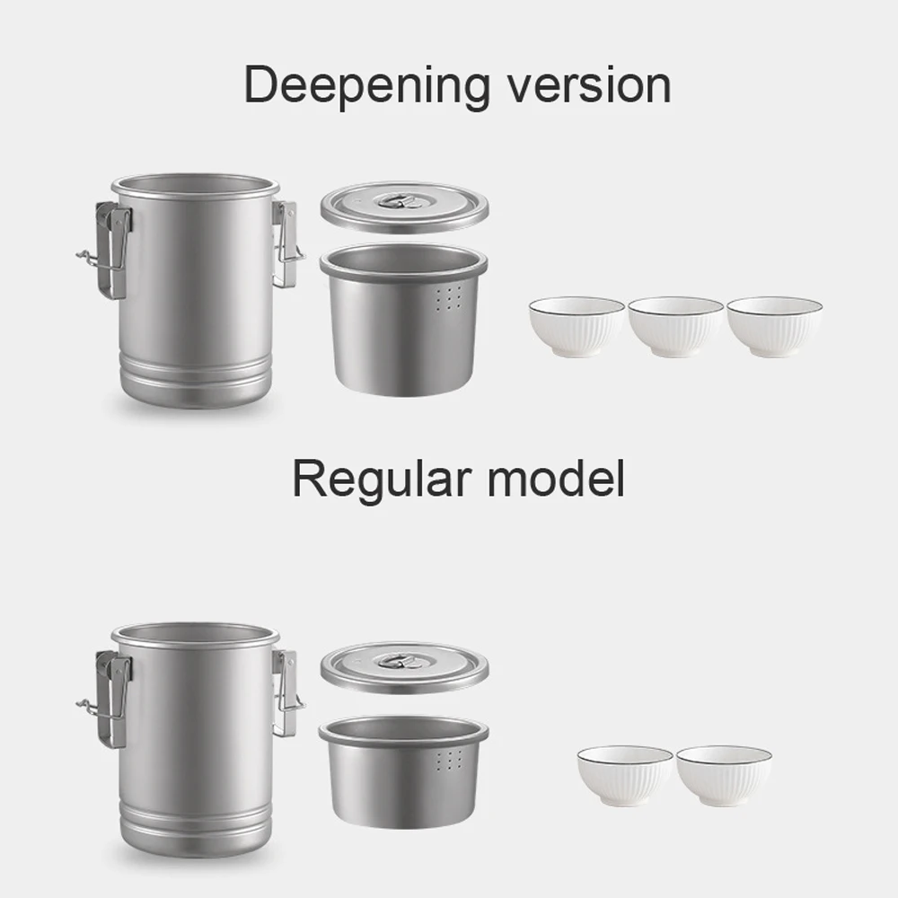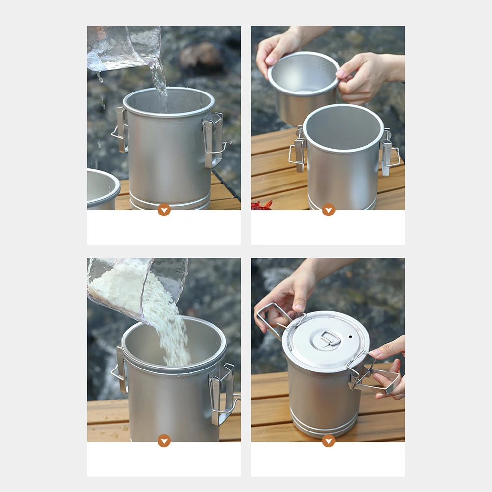 Esta olla de camping multiusos con su diseño científico y razonable y dos opciones de compartimentos de arroz poco profundos, puede satisfacer fácilmente las necesidades de cocinar y Cocinar a fuego lento para múltiples picnics.