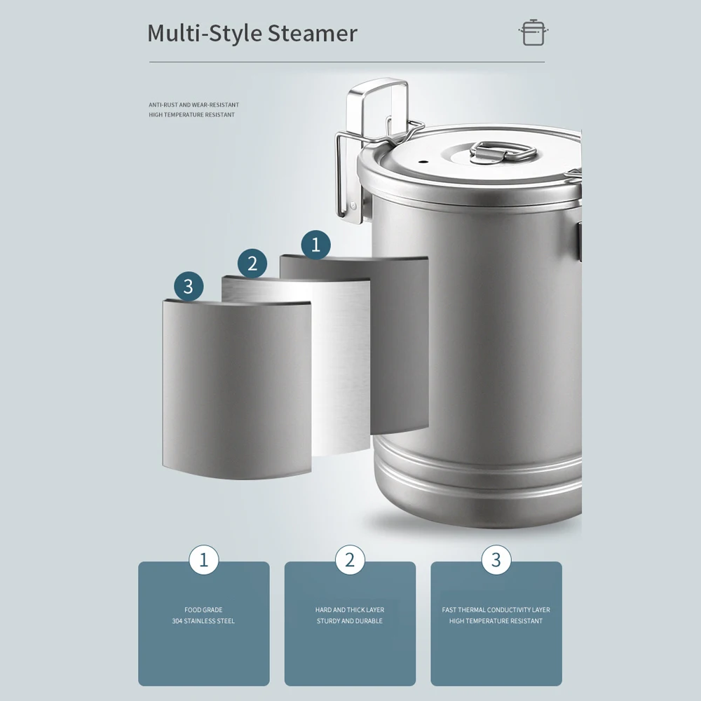 El cuerpo de la olla está hecho de acero inoxidable 304, una capa gruesa dura, conducción de calor rápida, resistente al óxido y al desgaste a altas temperaturas.