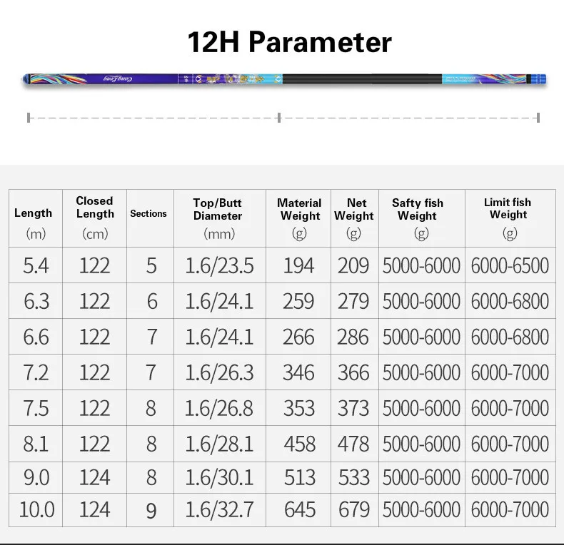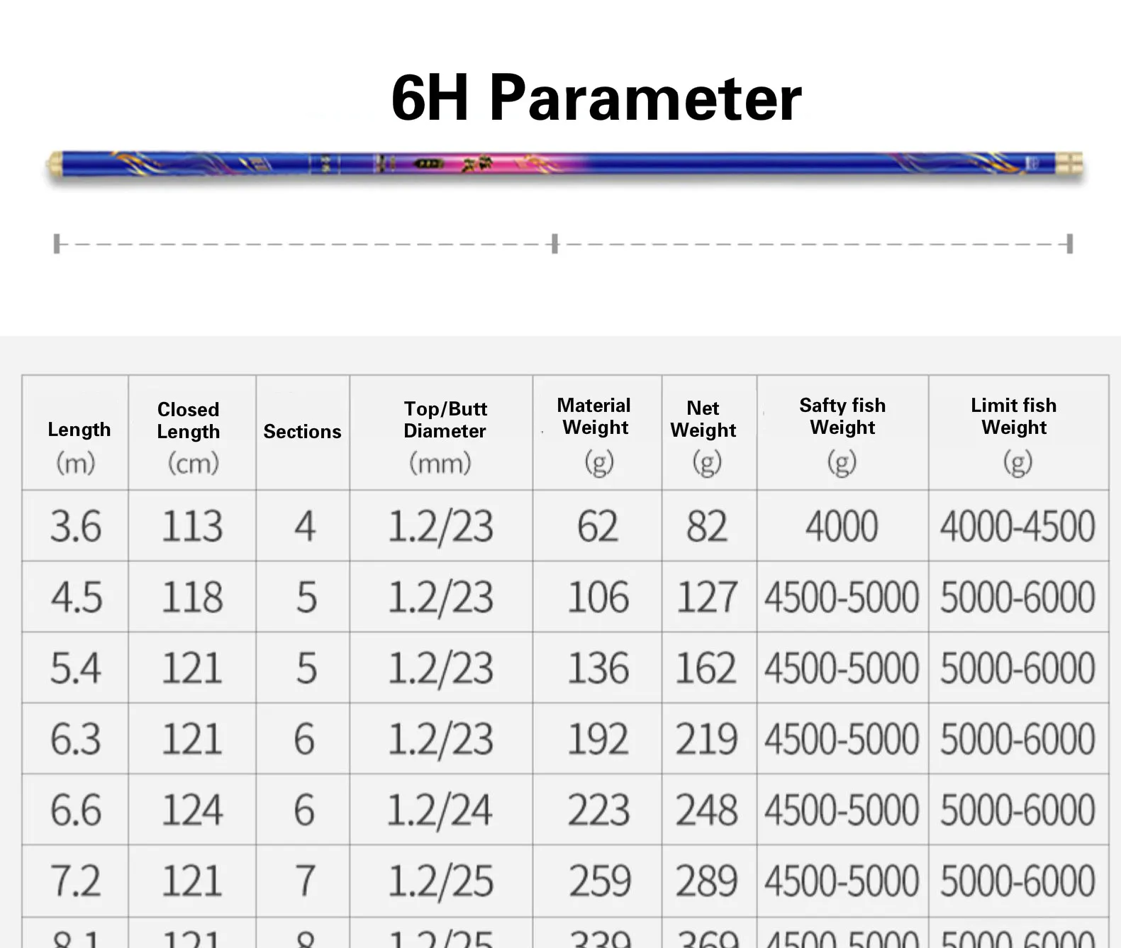 4.No hay diferencia entre los dos tipos de cañas de pescar excepto por elPintura y dureza. Dureza: 12H 6H