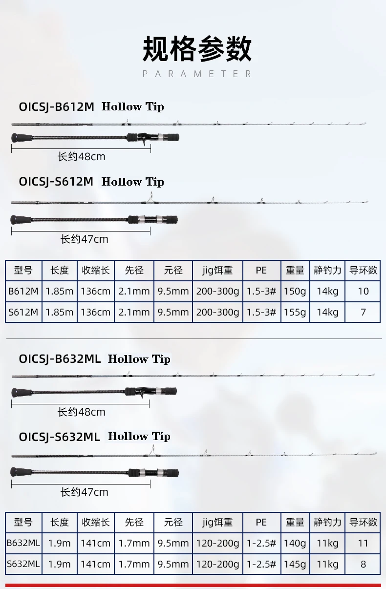 OLYMPUS-varilla de Jigging lenta OICSJ, piezas de Fuji, PE1-4 # Drag Power, 11-18kg, varilla de fundición giratoria, varilla de carbono sólido para agua salada, 1,85 m, 1,9 m