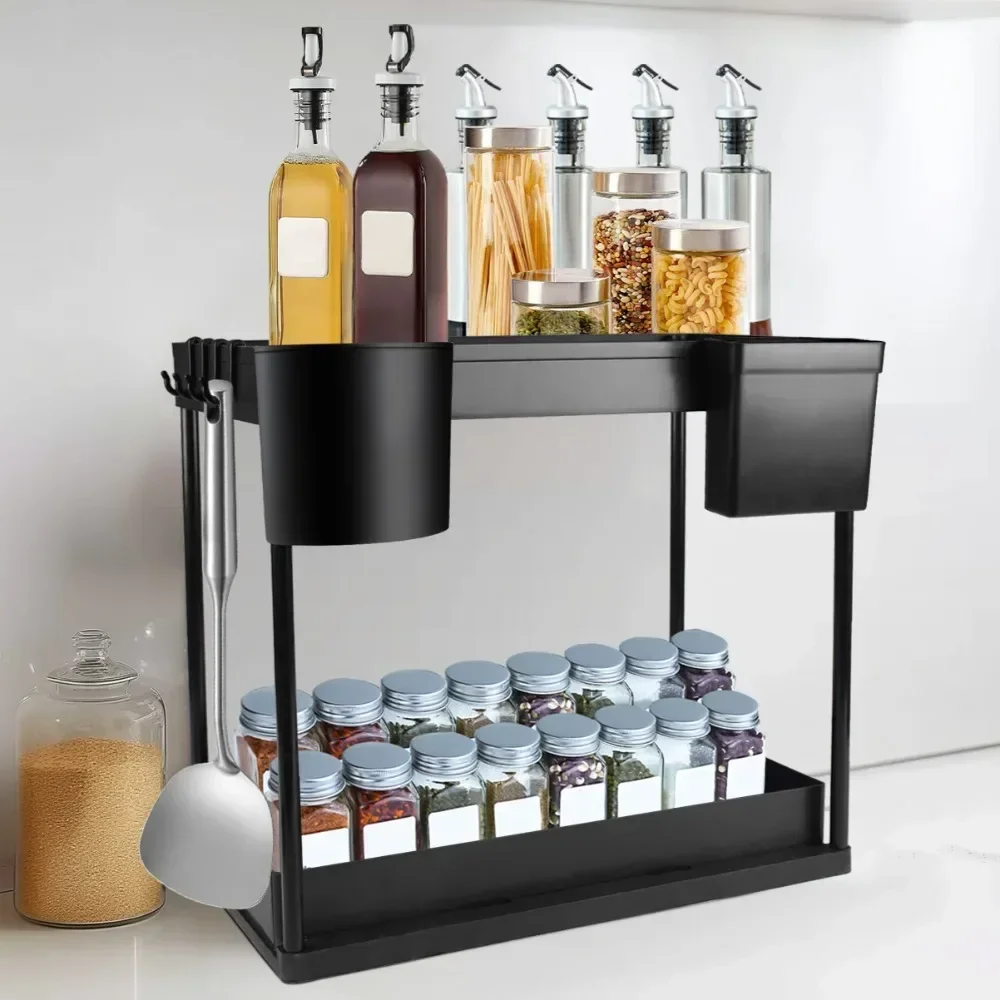 【Cajón de almacenamiento deslizante】El diseño del cajón inferior deslizante es ideal para el baño y la cocina, lo que facilita recoger y tomar en un espacio limitado.【Uso amplio y multiusos】Este organizador es adecuado para gabinetes de cocina, baño, armarios, lavandería, despensa y cualquier otro lugar aplicable.【Más accesorios】 El organizador de baño de 2 niveles viene con 2 tazas colgantes y 4 ganchos.Ganchos para colgar cosas pequeñas, colgar tazas para guardar cepillos o cosas pequeñas.