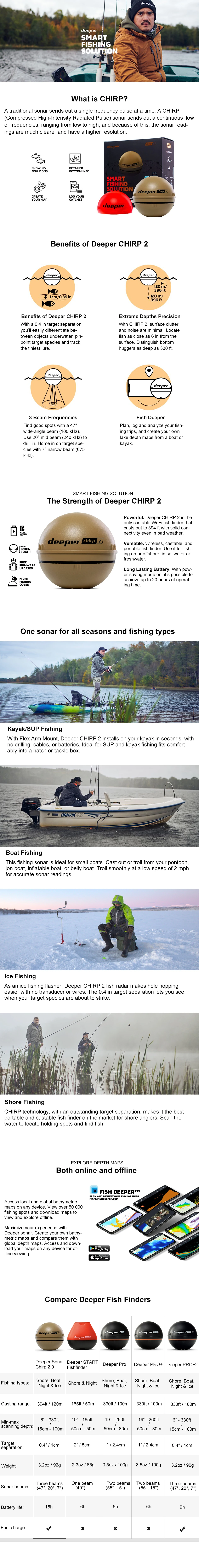 Original Lituania Deeper Chirp + 2,0 buscador de peces WiFi moldeable y portátil buscador de profundidad para kayaks barcos Sonar inteligente más profundo