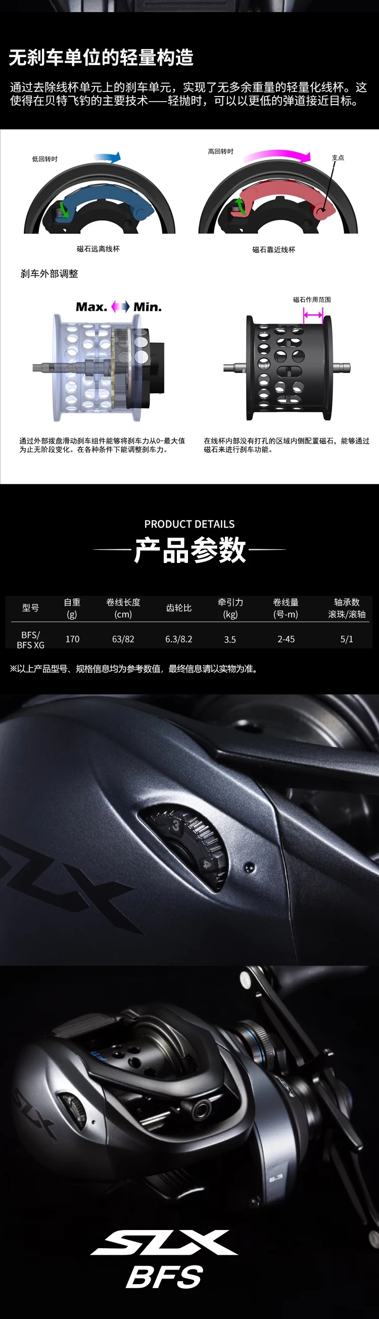 Original SHIMANO SLX BFS carrete poco profundo carretes de pesca Baitcasting rueda de corriente de goteo de microagua carretes de cebo pequeños