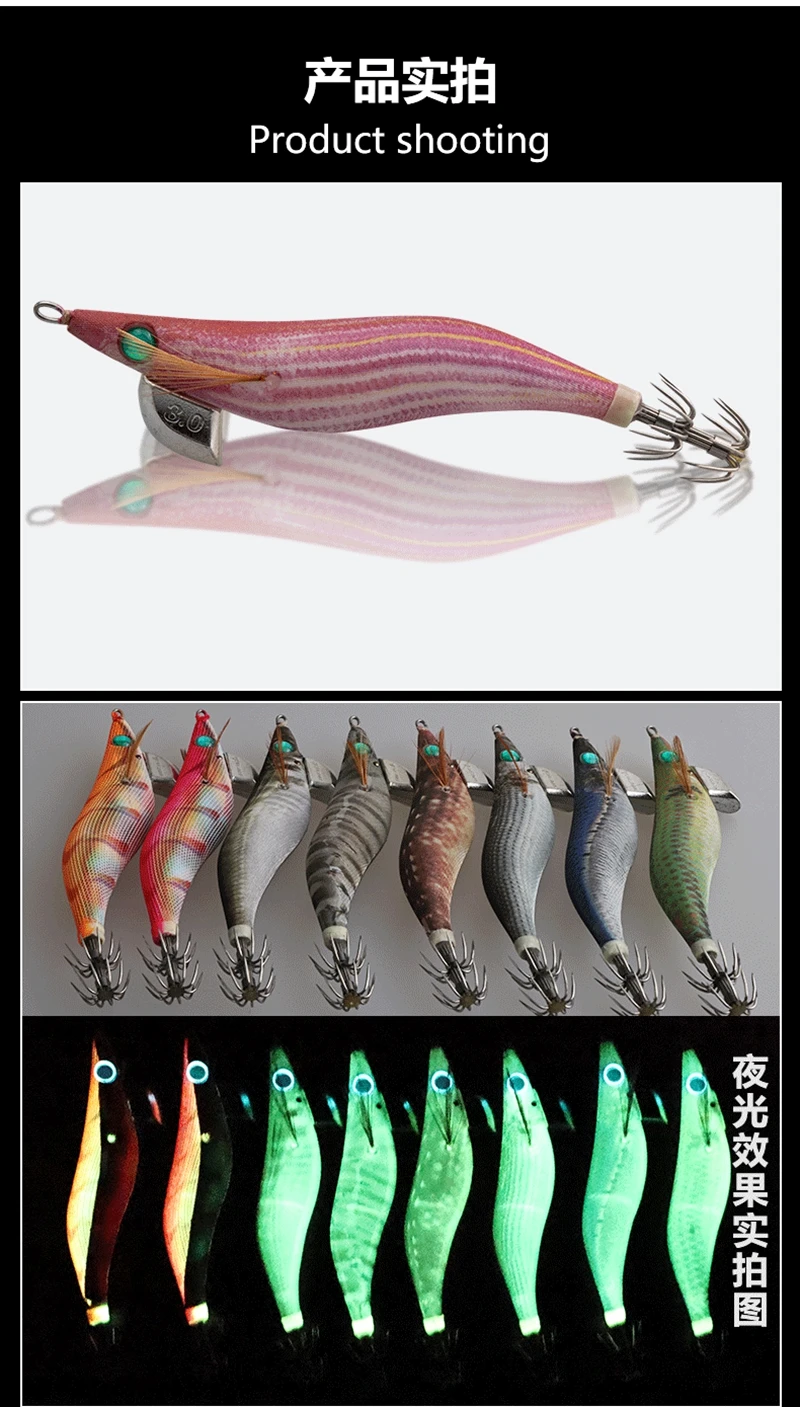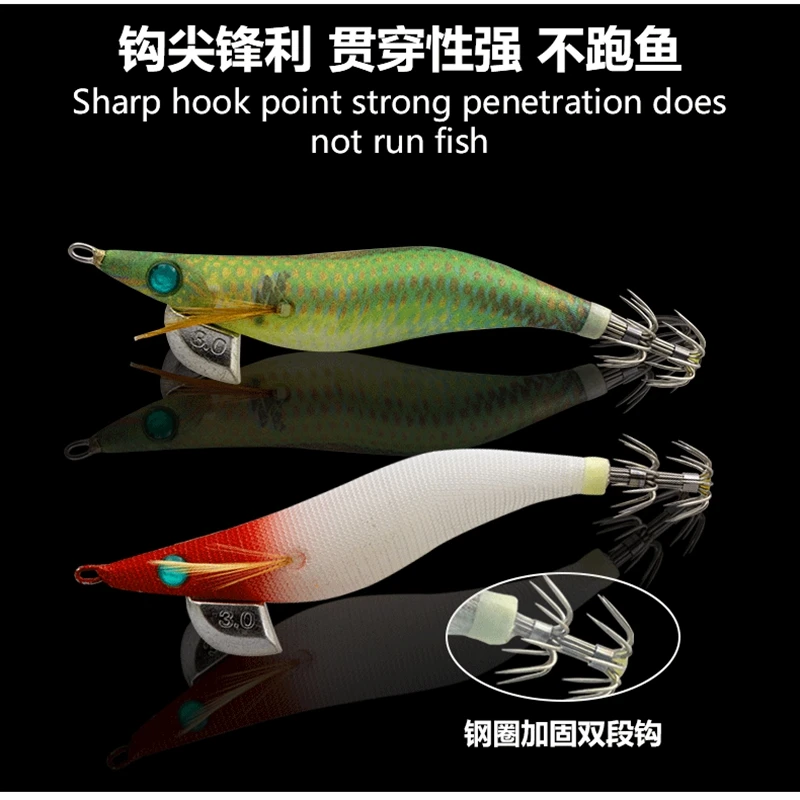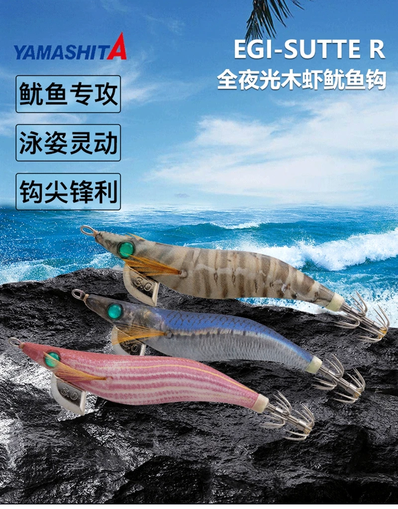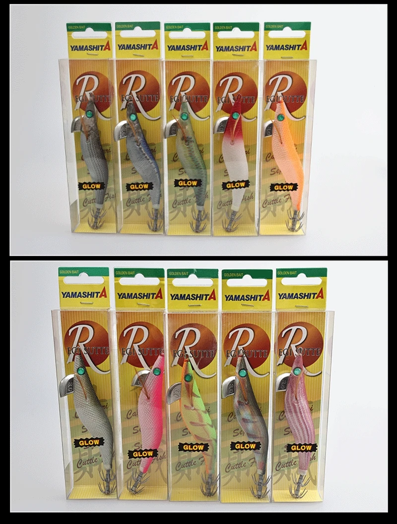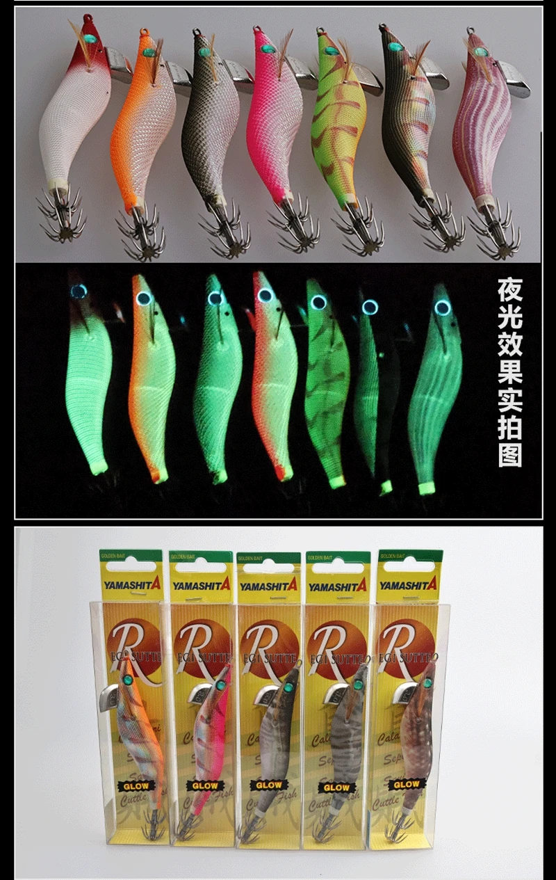 Original YAMASHITA Calamar HOOK Serie R # 3,5 20 g 105 mm Camarones de madera Cebo de calamar de 15 colores que emiten luz