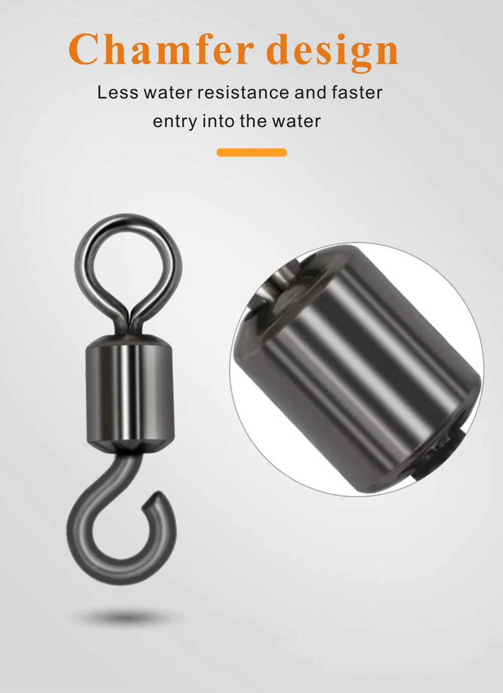 ORJD 50 Uds. Conector de pesca giratorio de 8 formas con apertura, conector giratorio de pesca de acero inoxidable de calidad, aparejos de pesca