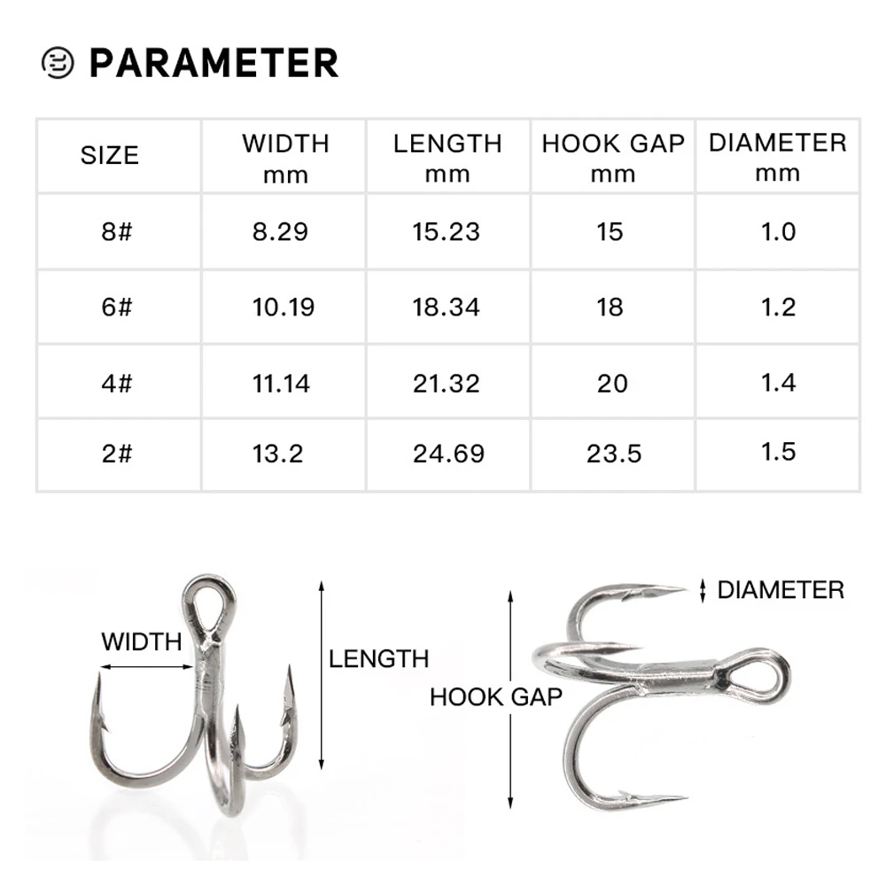 ORJD-Anzuelos de pesca de acero al carbono, anzuelos triples fuertes de níquel negro, tamaño 2 #-8 #