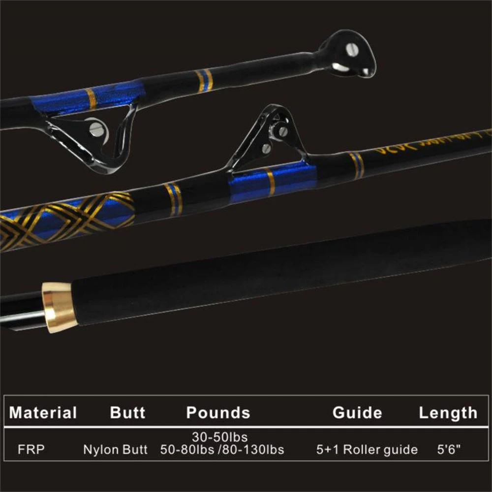 ORJD 30lbs 50lbs 80lbs 130lbs 5'6 "Cuero Delantero Grip Nylon Butt Salewater Big Game Trolling Rod Polo convencional Varilla pesada1 pieza 5 + 1 guías de rodillos