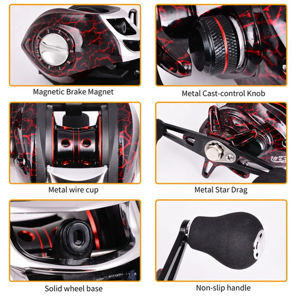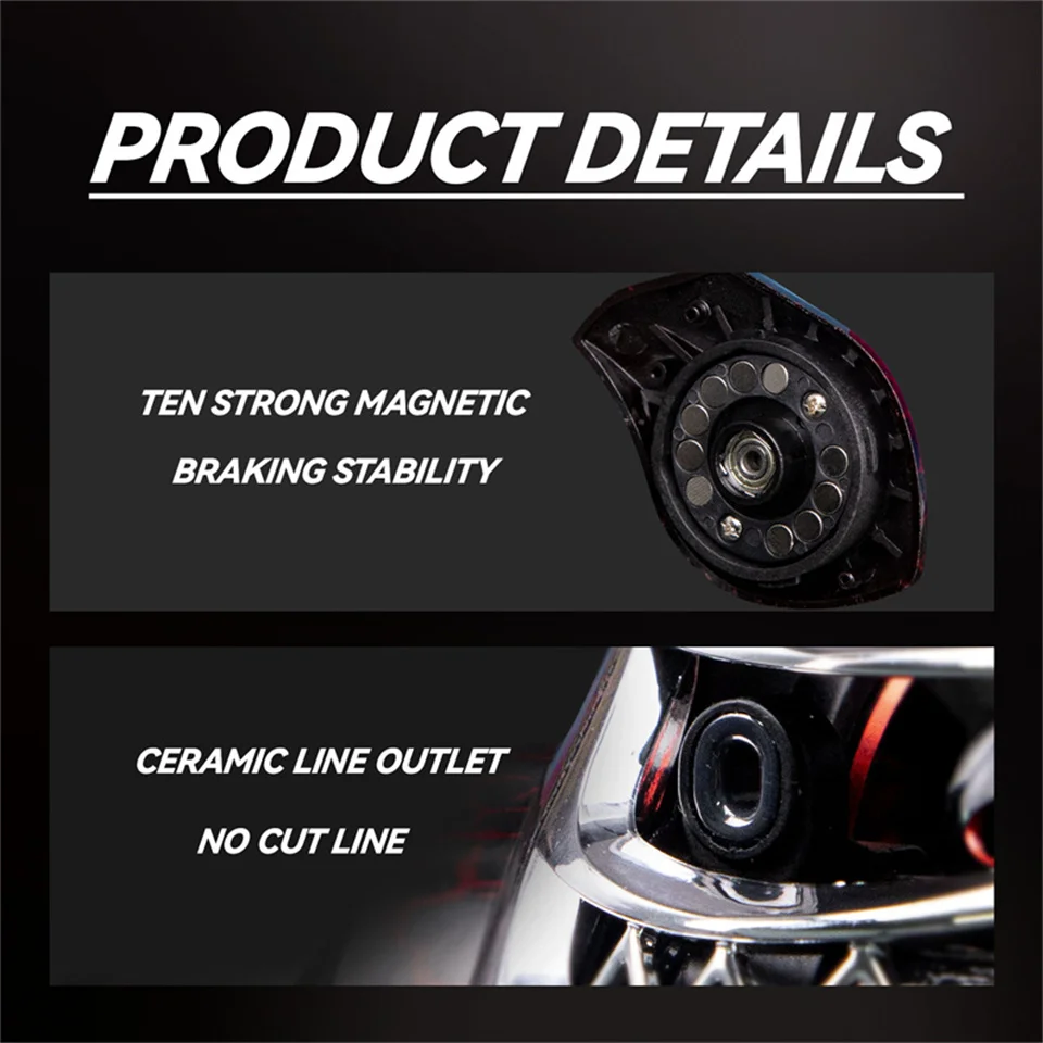 Pesca de alta velocidad: El carrete del sistema de freno Baitcasting permite la pesca a alta velocidad, por lo que es perfecto para atrapar peces en la carrera.
