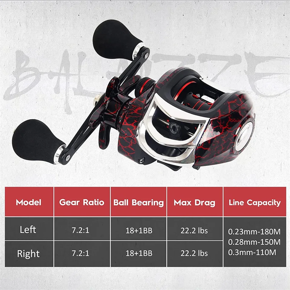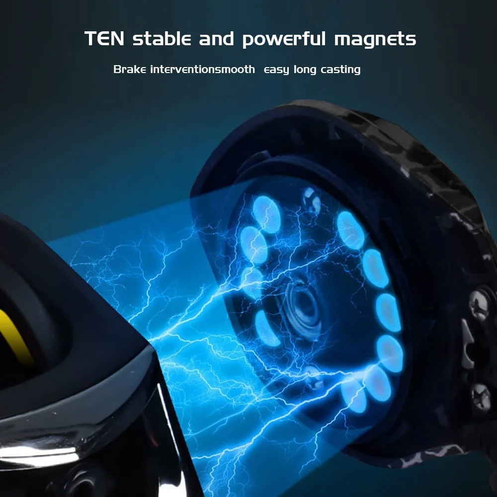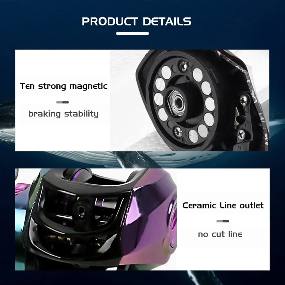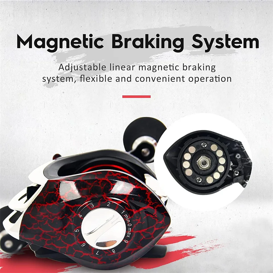 ORJD-Carretes de Baitcasting para agua salada, con sistema de freno magnético, arrastre de 8KG, 7,2: 1, rueda de pesca de oro negro de alta velocidad