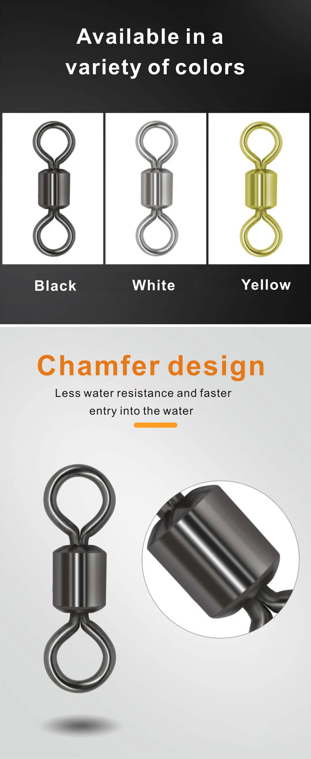ORJD-conector giratorio de pesca, rodamiento de barril de anillo sólido de acero inoxidable, KG fuerte, 20-50 piezas