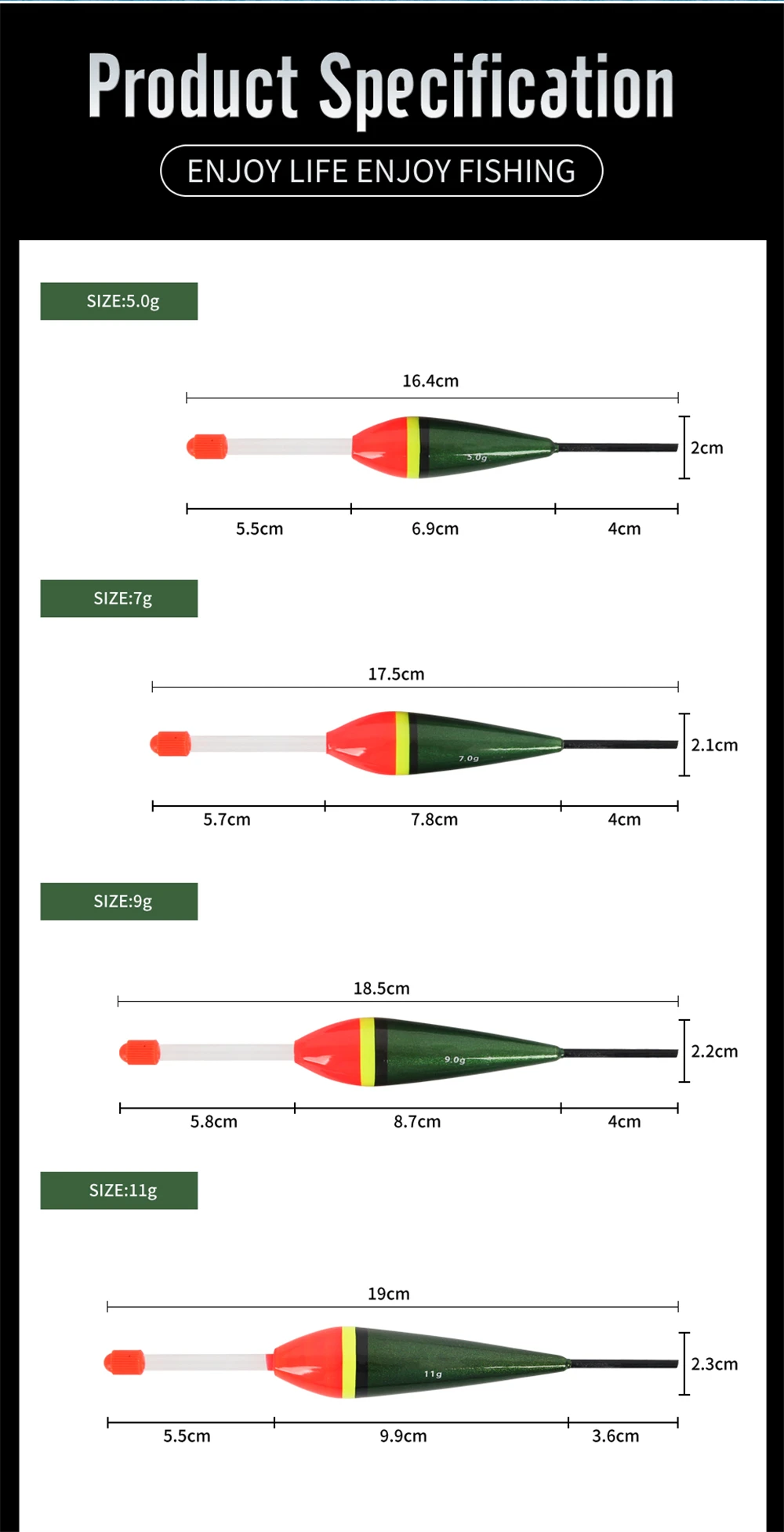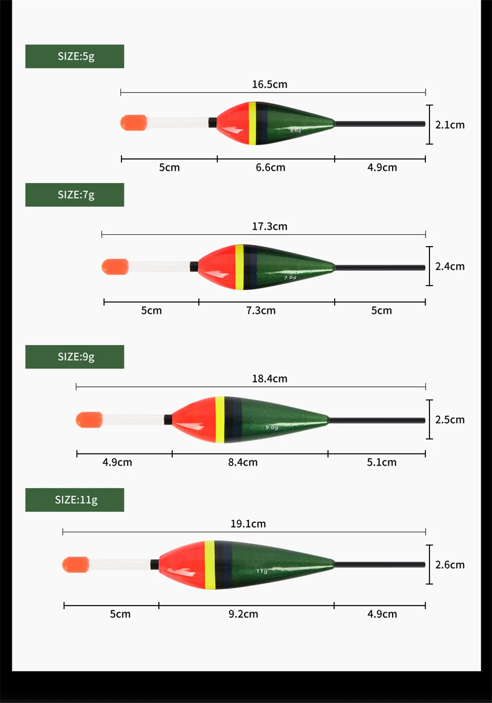 ORJD-Juego de flotadores de pesca, boya de madera de Balsa, tapón Bobber, accesorios de pesca japoneses, 3/4/5 piezas