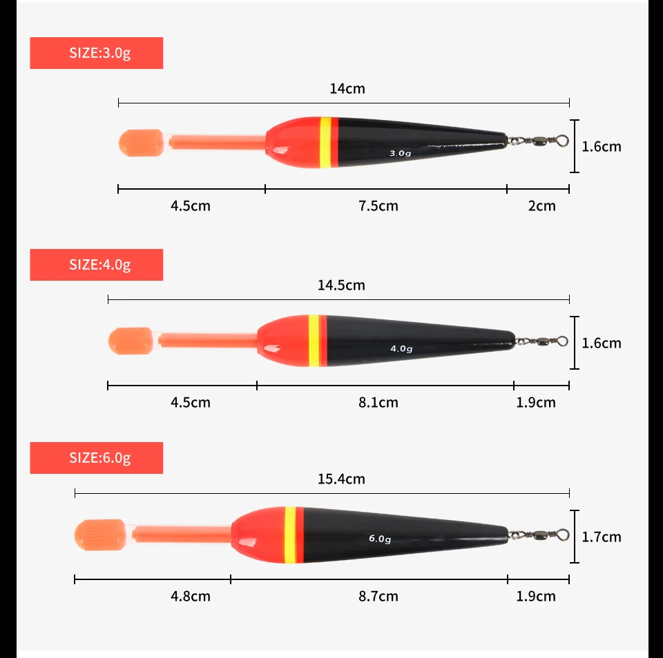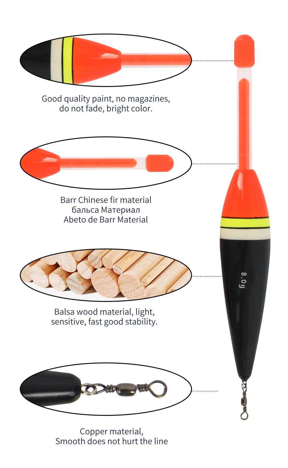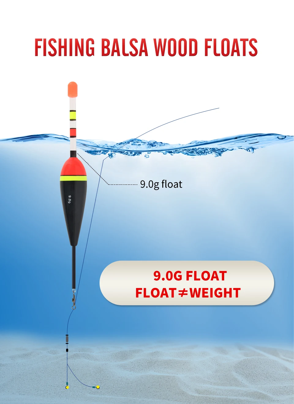ORJD Flotadores de Pesca de Madera Balsa, Juego de Boya, Tapón de Bobber, Accesorio de Pesca Japonesa, 3 piezas