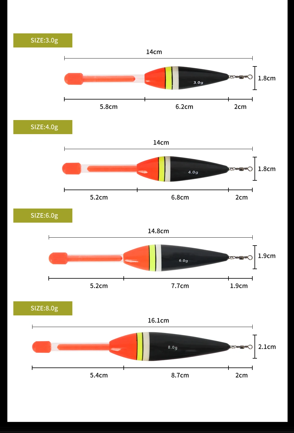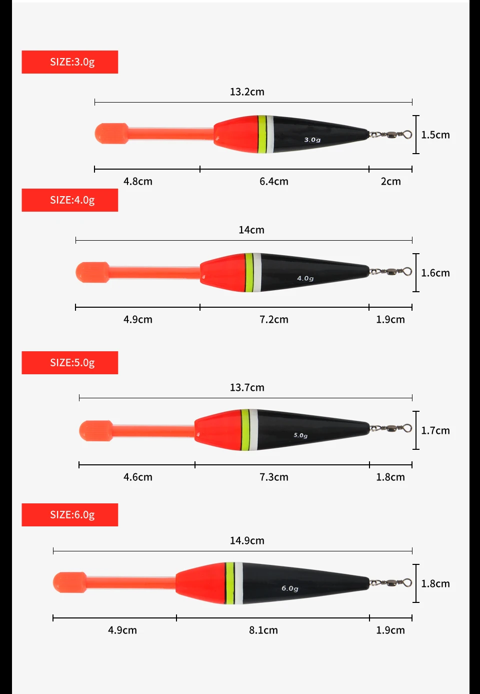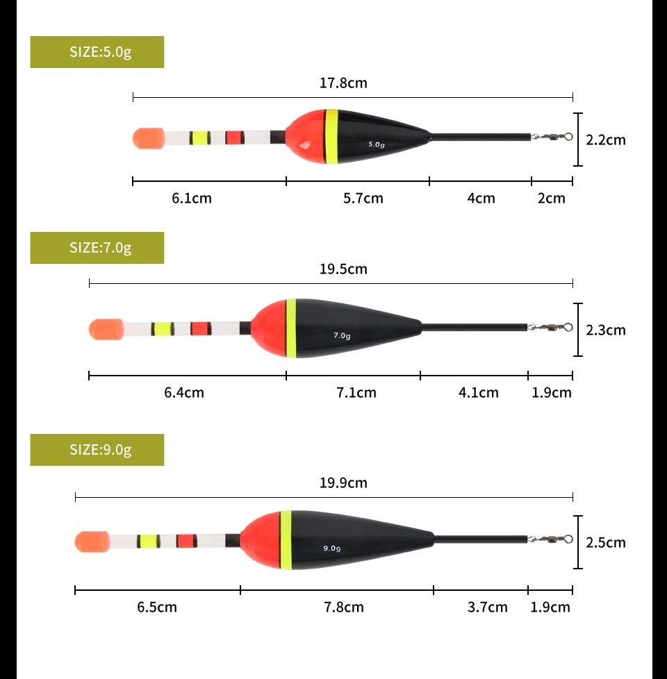 ORJD Flotadores de Pesca de Madera Balsa, Juego de Boya, Tapón de Bobber, Accesorio de Pesca Japonesa, 3 piezas