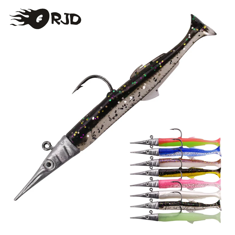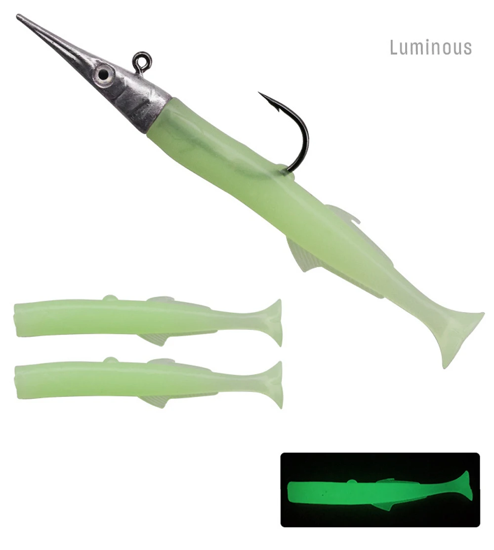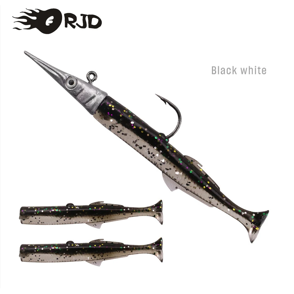 OrJD negro Minnow cabeza de plomo Tunas con gancho 11cm 14g plantilla cebo suave hundimiento pececillo fácil brillo señuelo de pesca de mar conjunto de Señuelos de pesca