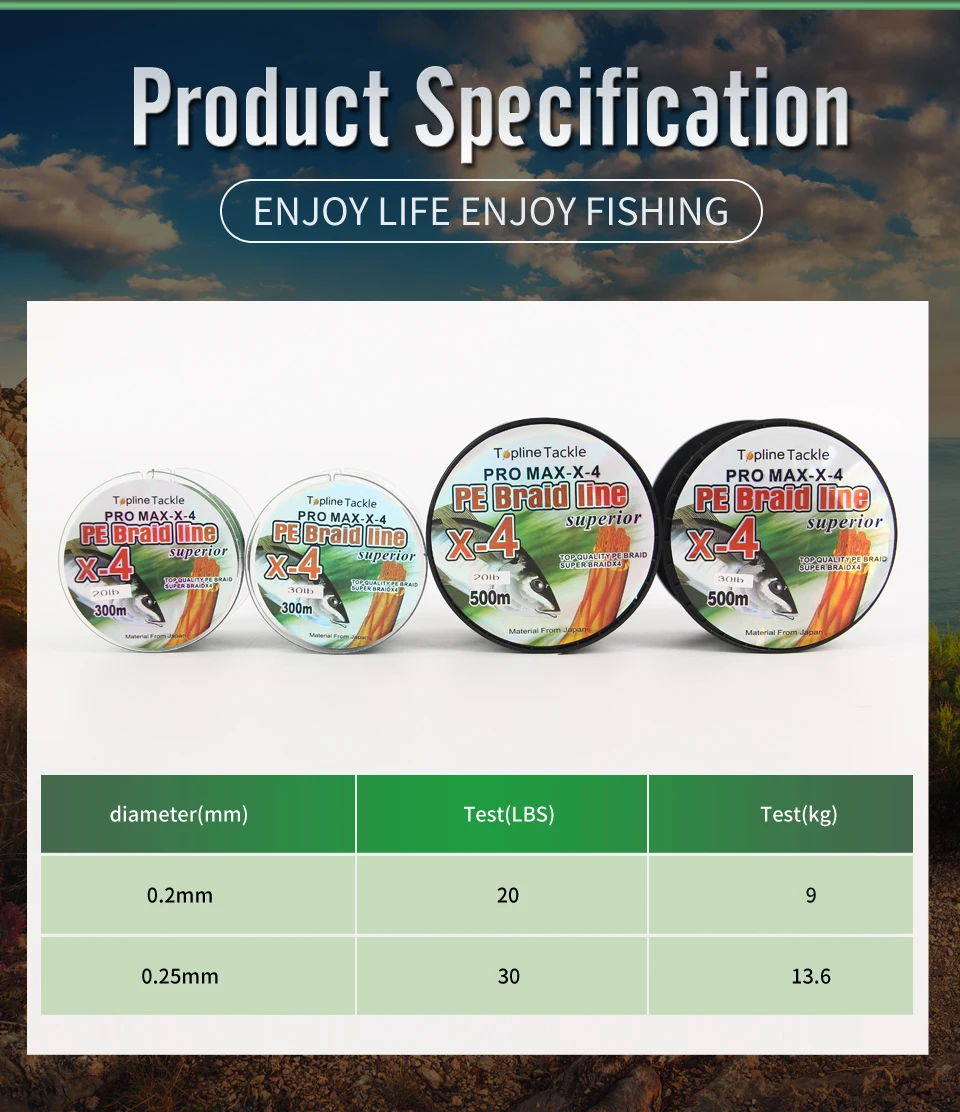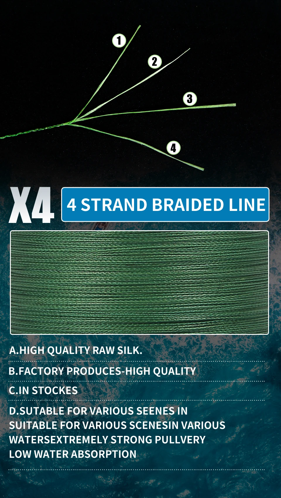 Hilo de pesca trenzado de 300M y 100M, mejor líder, hilo de pesca trenzado de 4 hebras, hilo de pesca japonés multifilamento para carpa, hilo de PE.