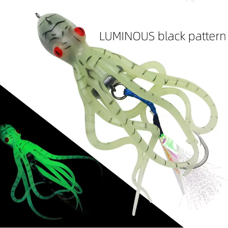 ORJD-señuelo de pesca Artificial, cebo de pulpo 3D, falda de calamar de cola larga de agua salada, TPE, suave, UV/brillo, 110g/150g/200g, aparejos