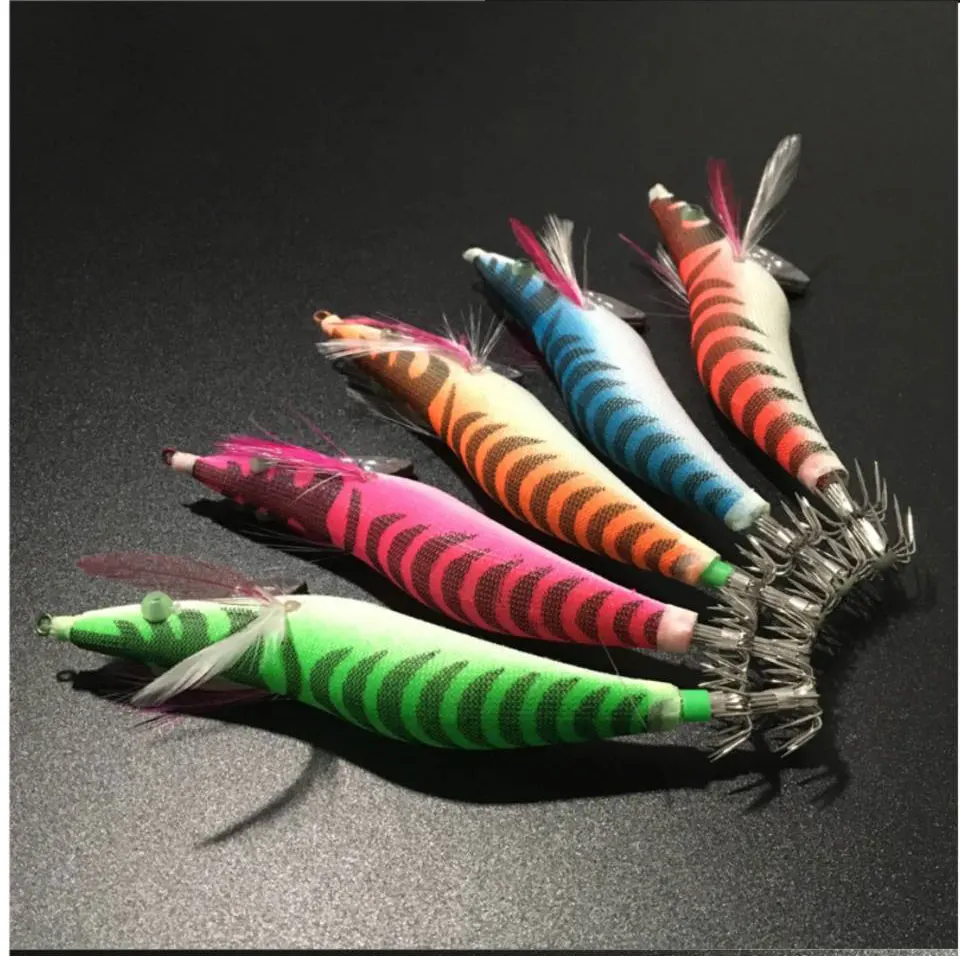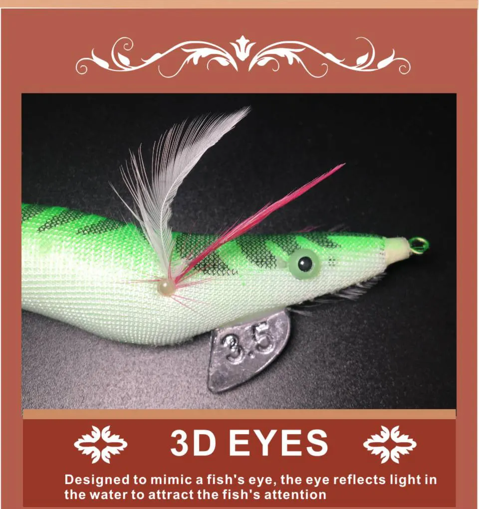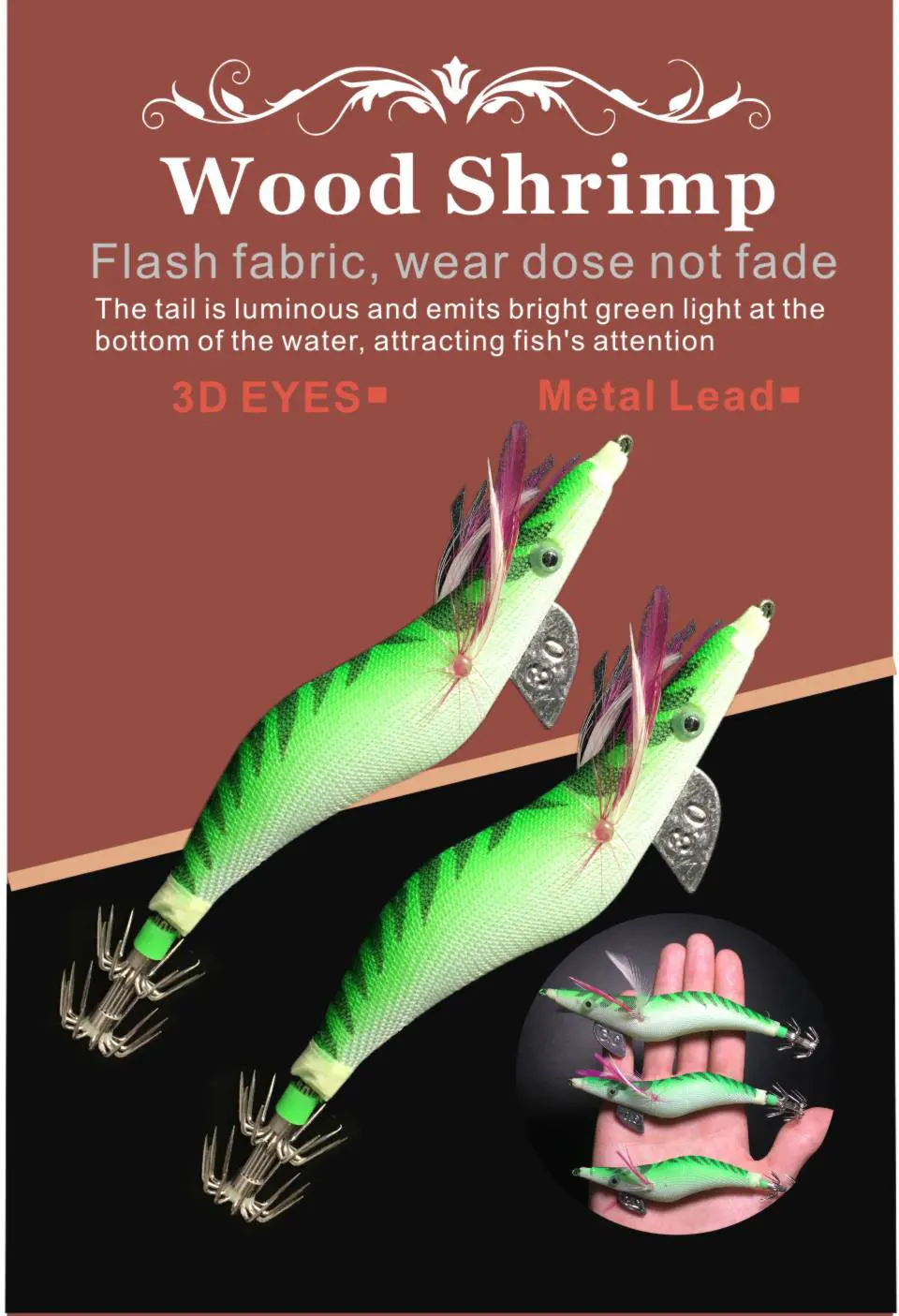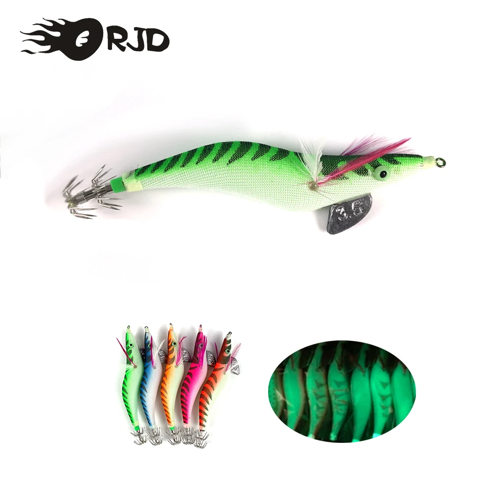 ORJD-señuelo de Pesca de Mar, anzuelo de calamar Artificial luminoso, cebo de pesca de Lucio, accesorios de aparejos de pesca, 1 piezas, camarón de madera, 2,5g, 3g, 3,5g