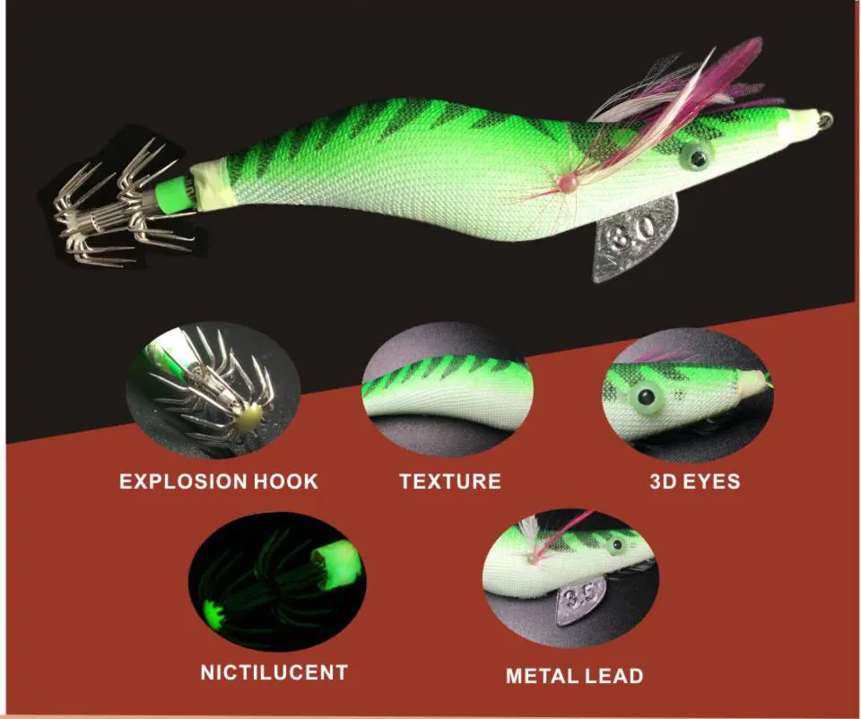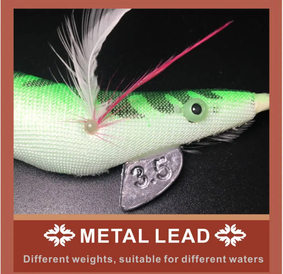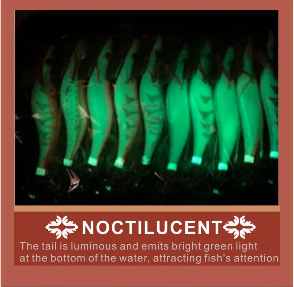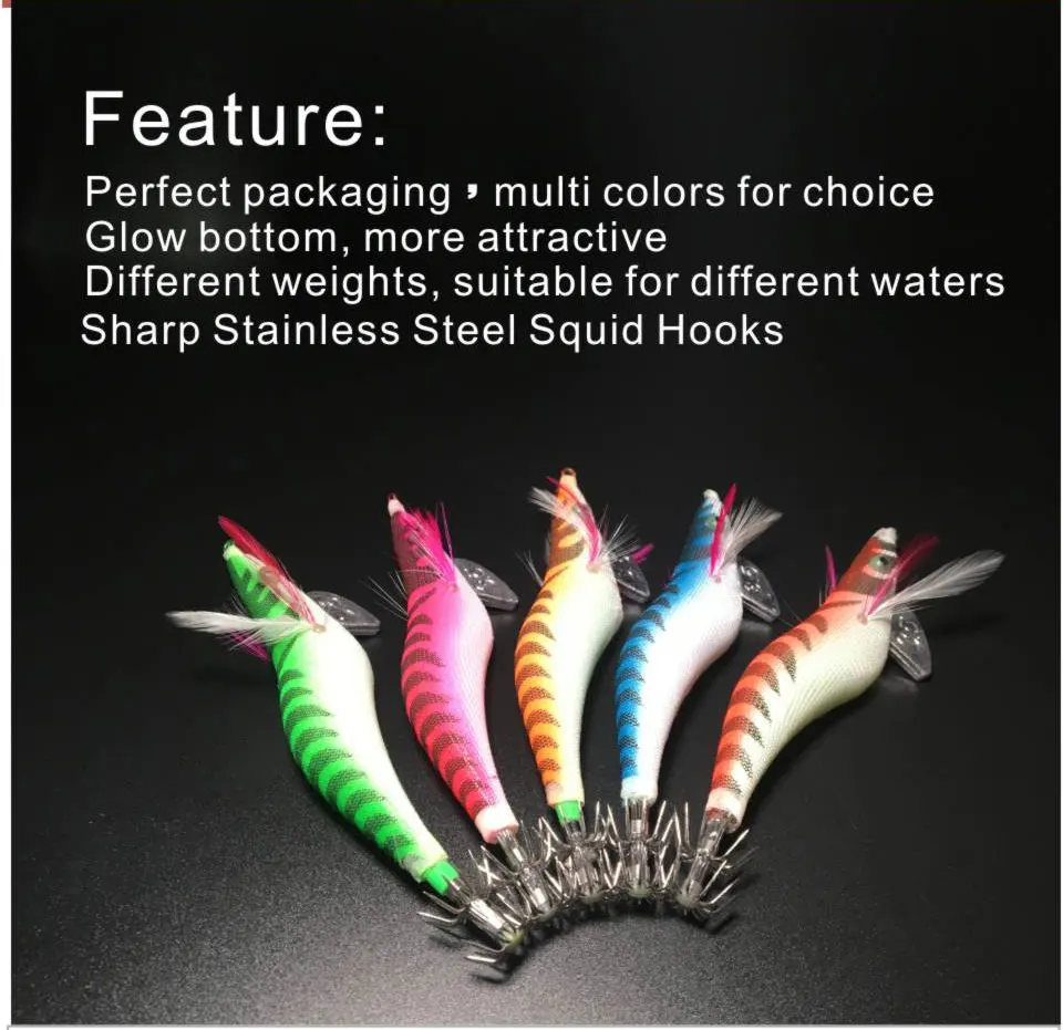 ORJD-señuelo de Pesca de Mar, anzuelo de calamar Artificial luminoso, cebo de pesca de Lucio, accesorios de aparejos de pesca, 1 piezas, camarón de madera, 2,5g, 3g, 3,5g