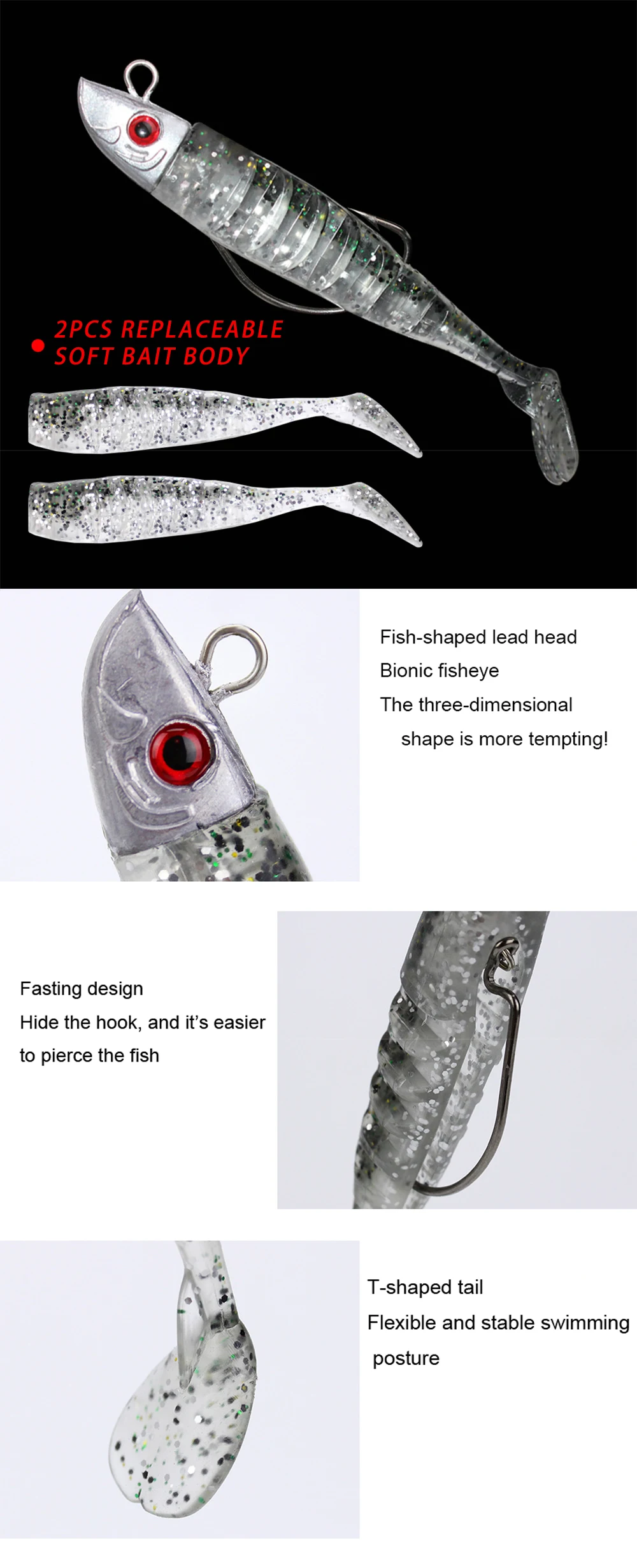 El sistema JH le permite girar desde la parte delantera del cuerpo blando. Nadará flexible y agitará frecuentemente, y será más atractivo para los peces. La cabeza y el cuerpo del señuelo son articulados, lo que aumenta los anzuelos y mejora en gran medida la acción.