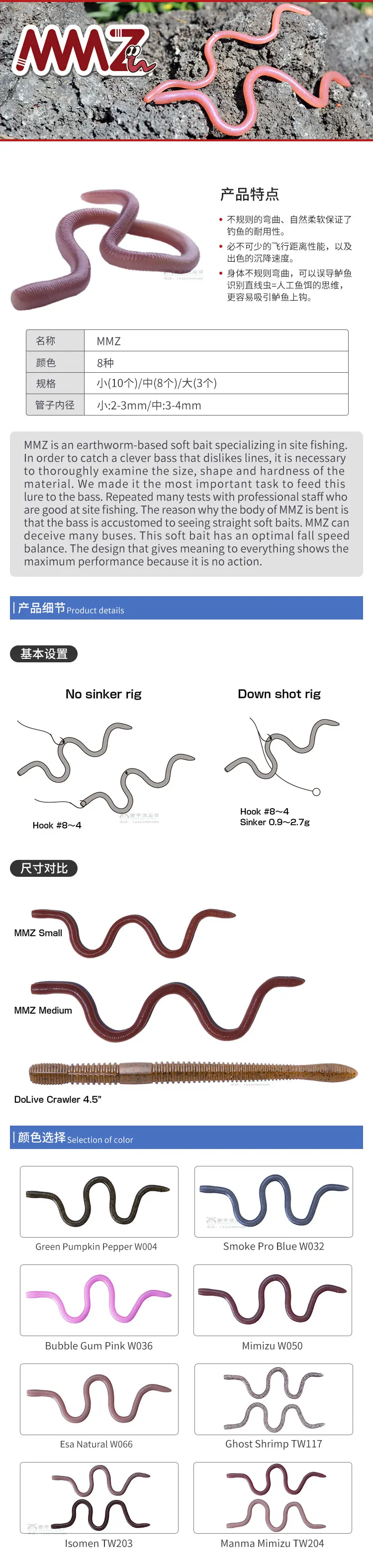 OSP Japan OSP Road Sub-soft Bait MMZ Samll curvo Earthworm Soft Worm Black Pit Bass Noodle Worm cebo falso