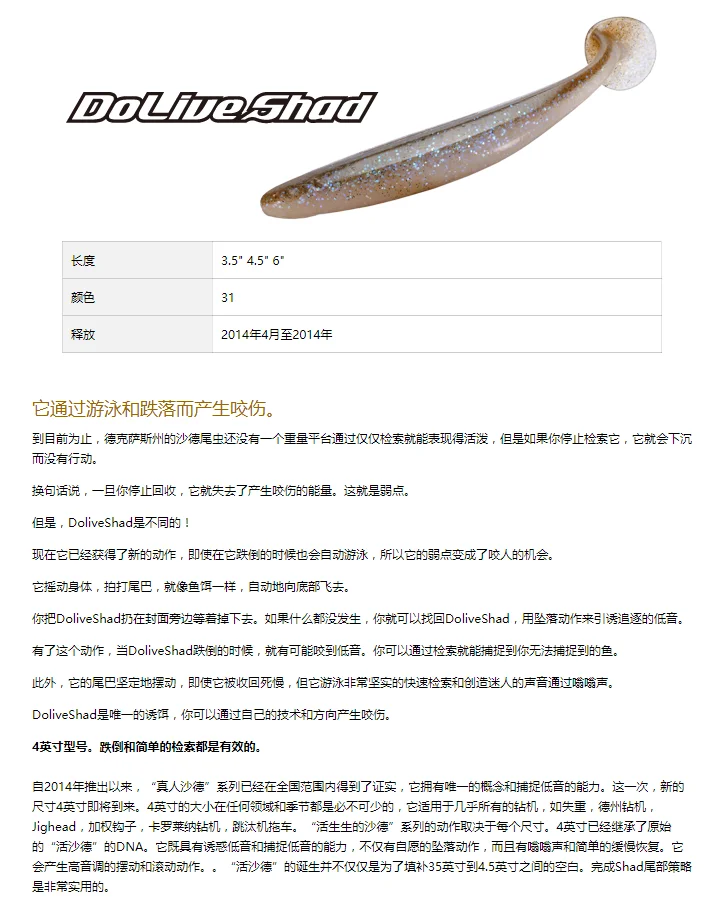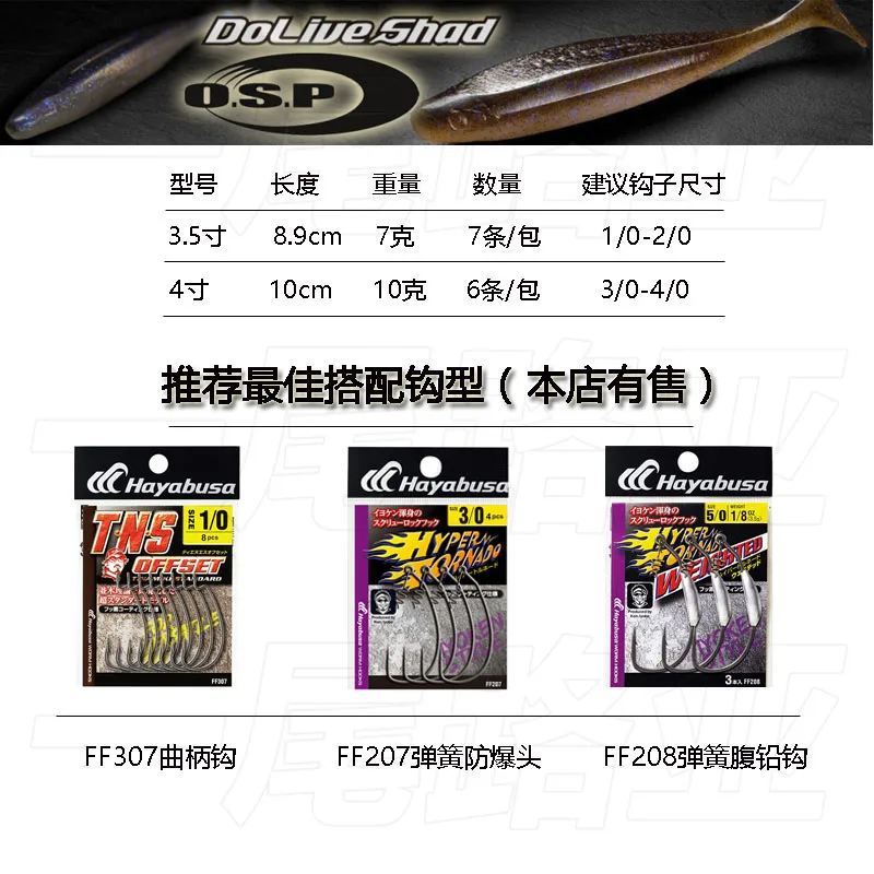 O.S.P OSP Dolive Shad cebo blando de alta gravedad específica, cola en T, pez blando tipo oscilante, cebo de gusano blando de Luya