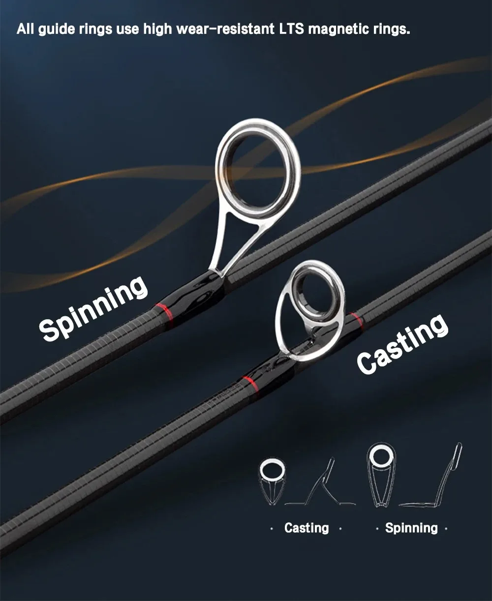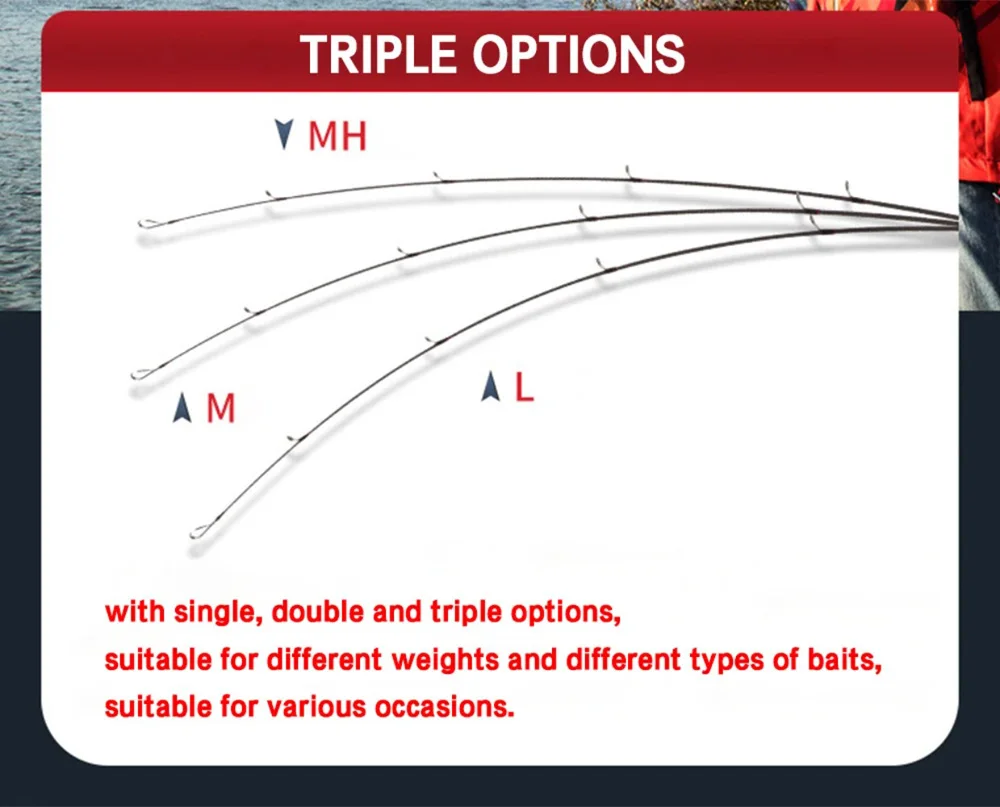 5. Con diseño de dos secciones, la caña de pescar tiene una capacidad de ajuste perfecta, con opciones simples, dobles y triples, adecuada para diferentes pesos y diferentes tipos de cebos, adecuada para varias ocasiones;