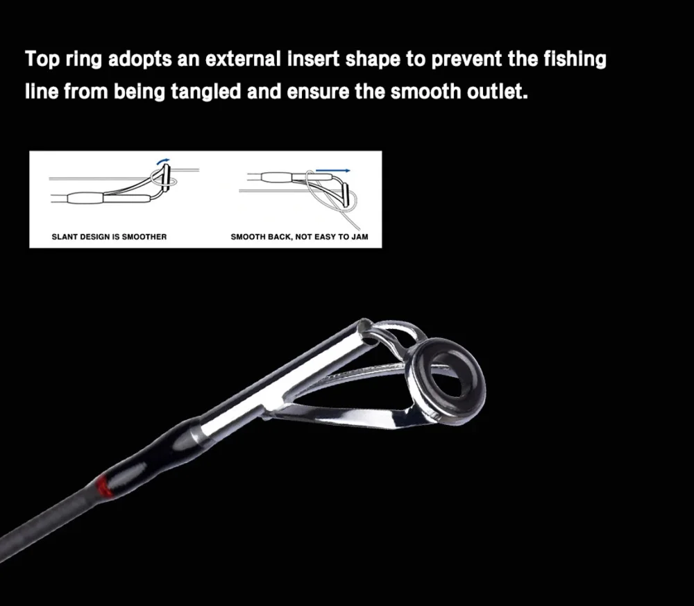 4. El anillo superior adopta una forma de inserción externa para evitar que la línea de pesca se enrede y garantizar una salida suave;