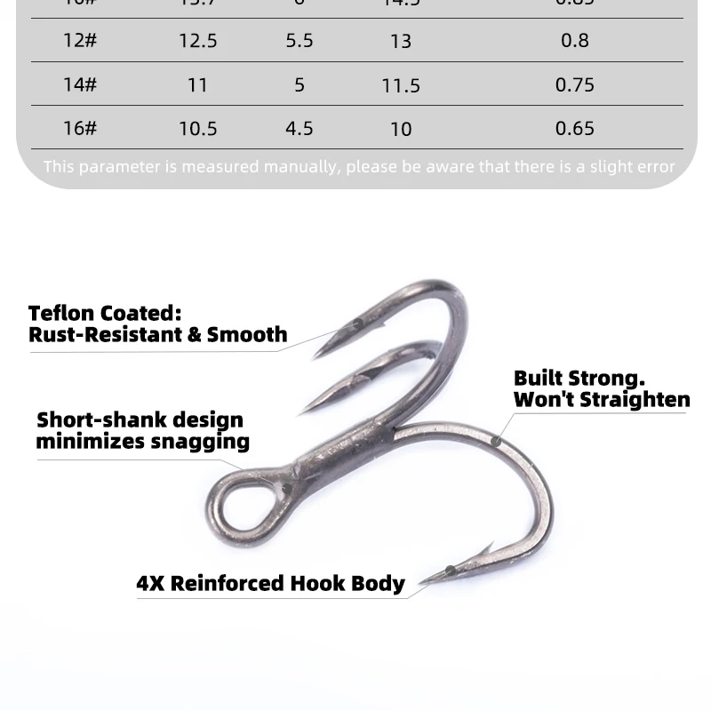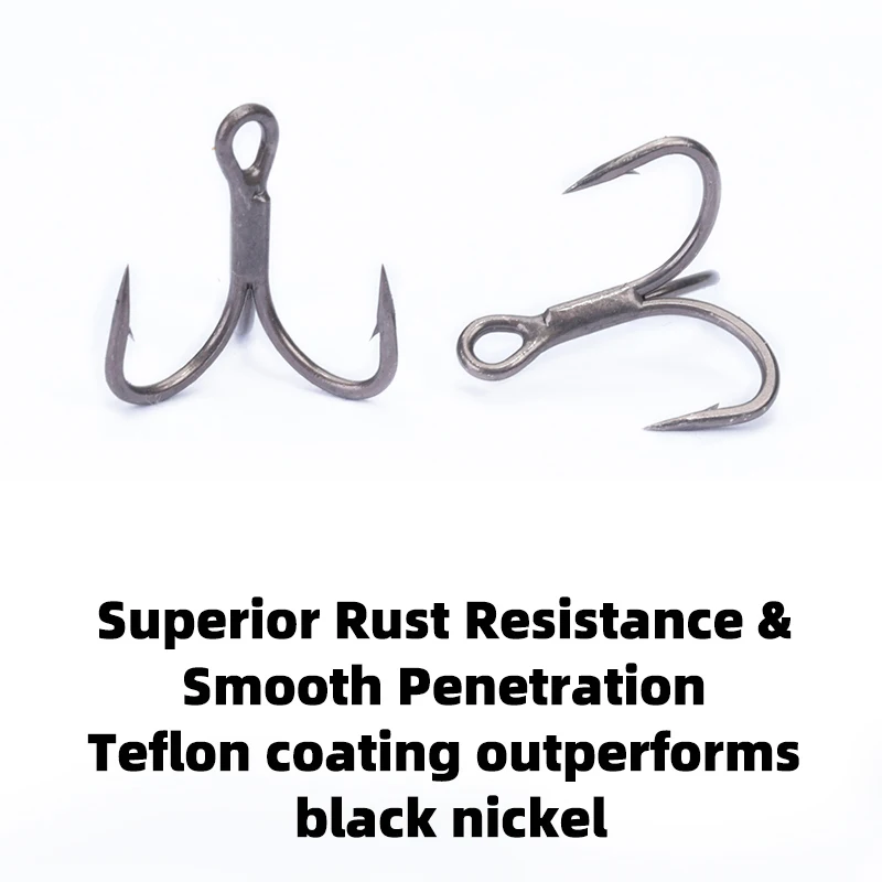 Descripción :OUTKIT 10 Uds 6022 gancho triple recubierto de teflón 4x fuerte súper afilado 4-16# Anzuelos triples de mar de acero de aleación antioxidante, aparejos de pesca
