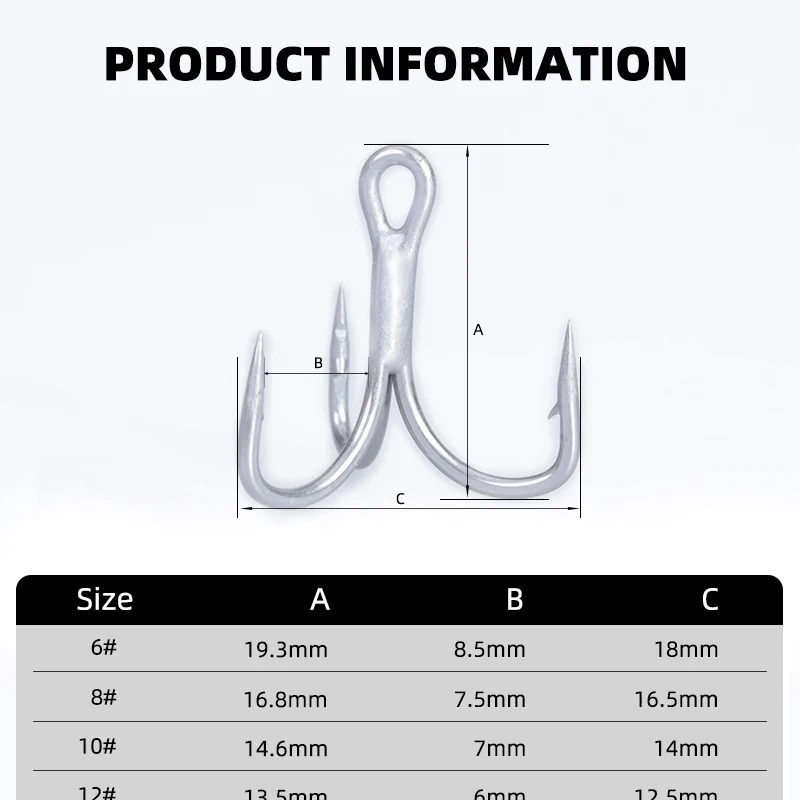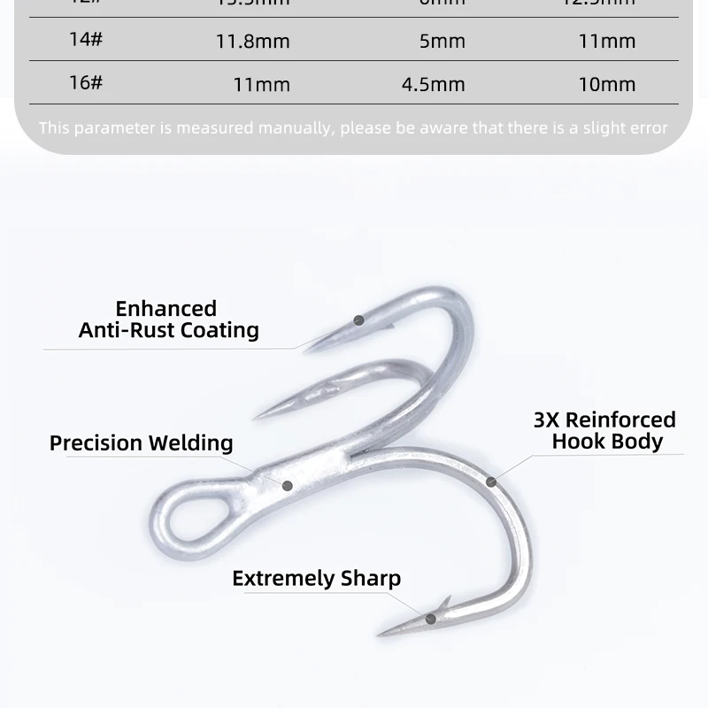 Descripción :OUTKIT 10 Uds 6066 nuevo anzuelo triple antioxidante 3x fuerte súper afilado 6-16# Anzuelos triples de mar de acero de aleación antioxidante, aparejos de pesca