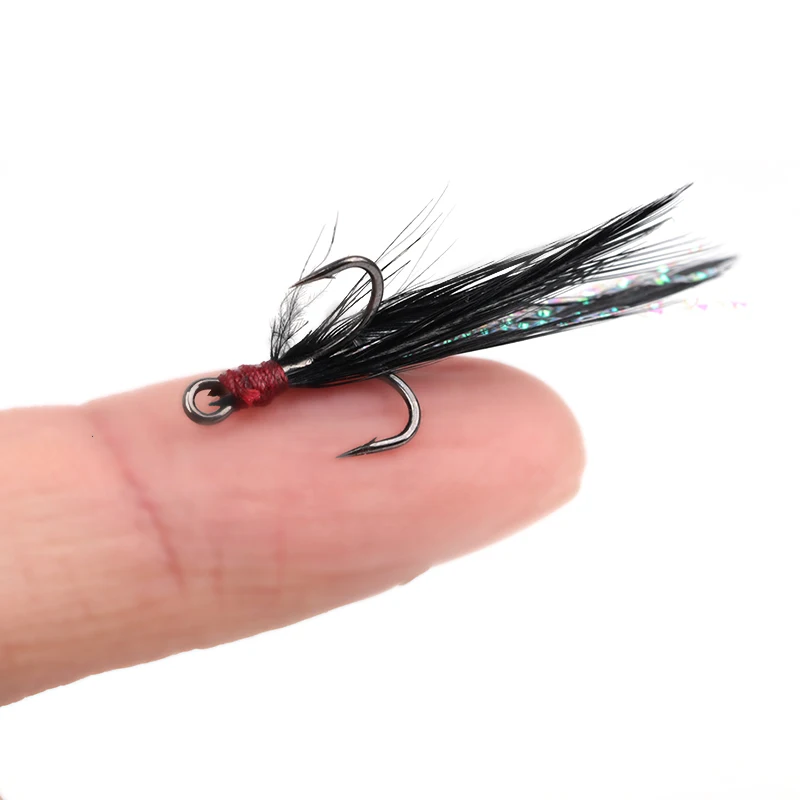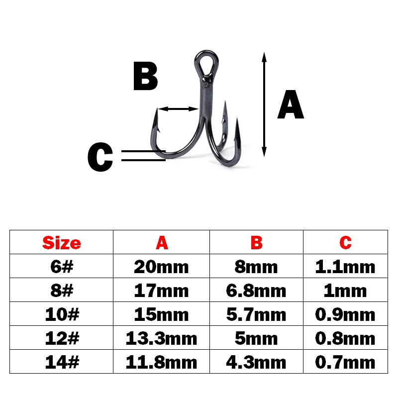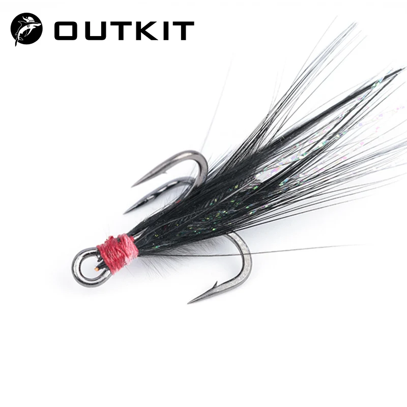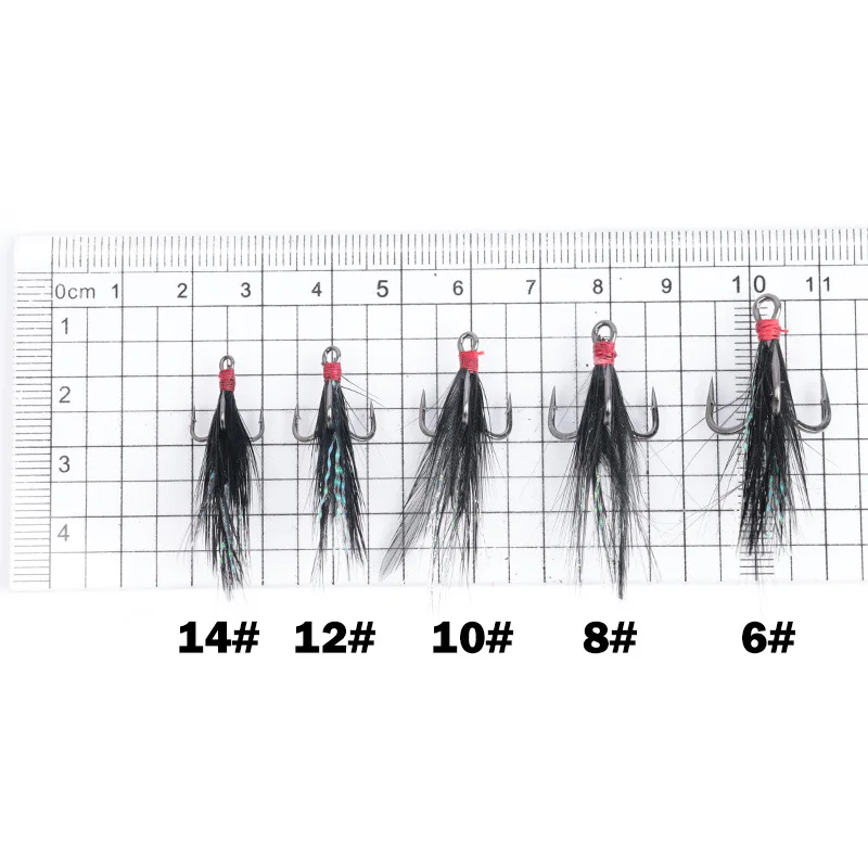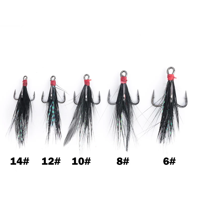 Descripción :OUTKIT 10 Uds 6066 anzuelos triples de señuelo 3X de fuerza con aparejos de pluma anzuelo de pesca anzuelos de púas de acero al carbono más fuertes Pesca