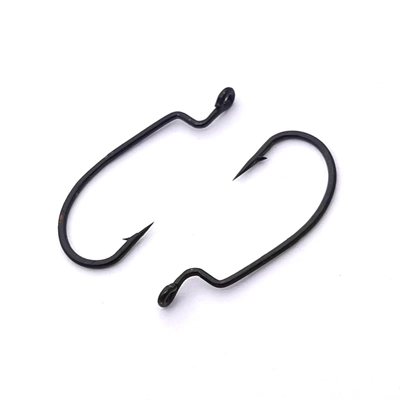 Descripción :10 unids/lote anzuelo de pesca de acero con alto contenido de carbono anzuelo de manivela negro señuelo anzuelo de gusano con agujero ganchos de pesca