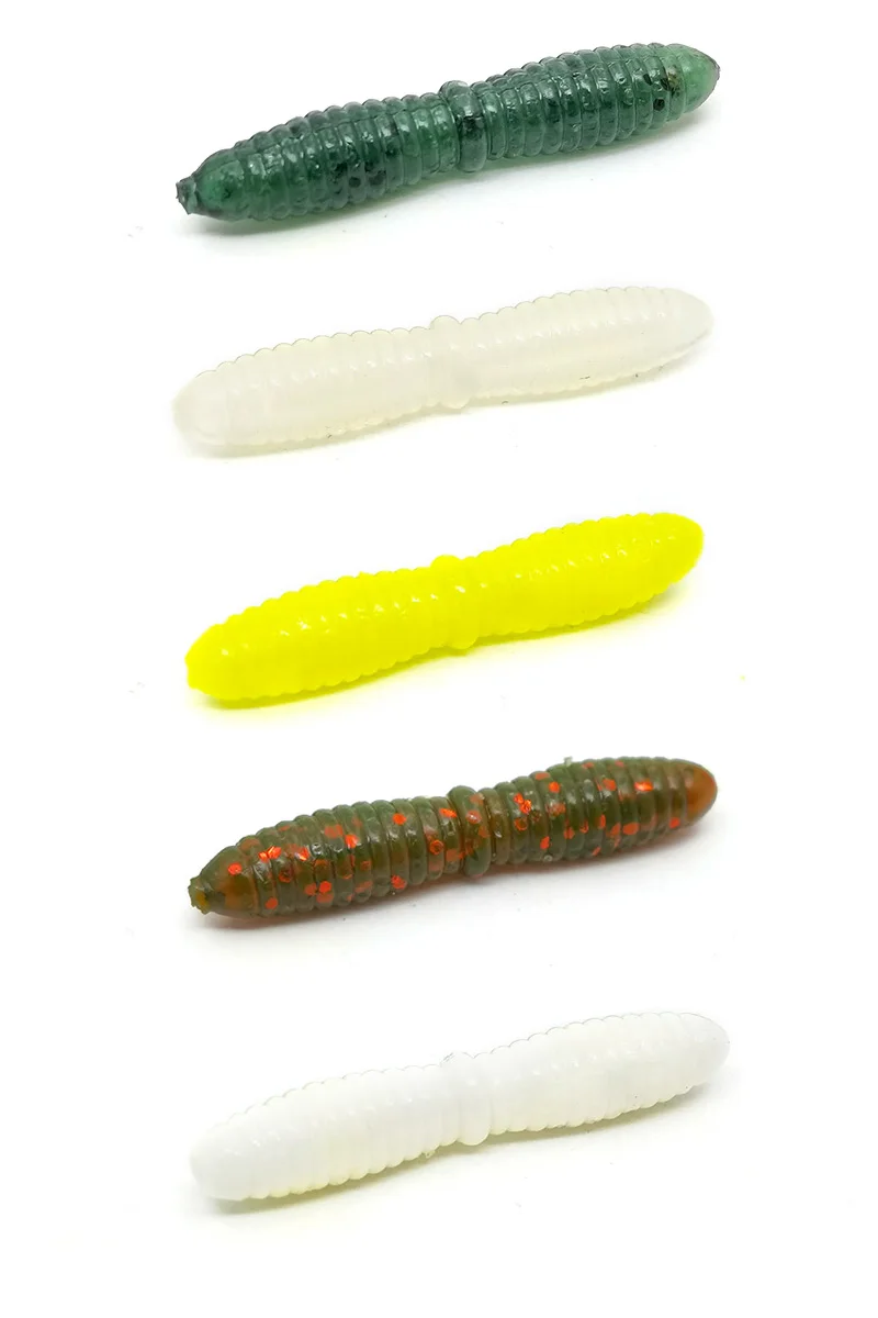Descripción :OUTKIT15 Uds señuelo de pesca hundido cebo blando 0,9g 35mm silicona Pupa Hula Grubs gusano de goma cebos para lubina perca peces Señuelos