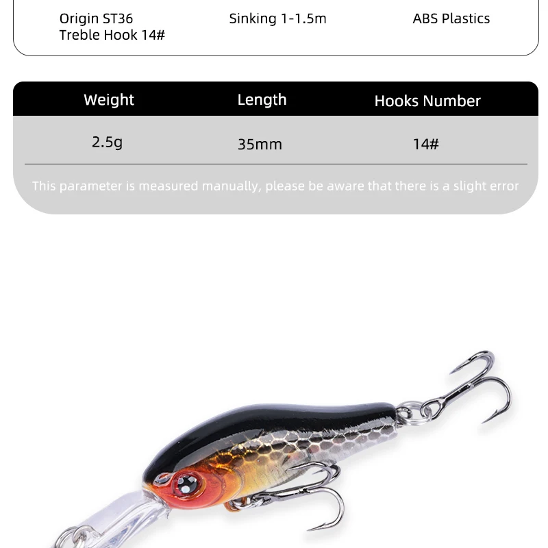 Descripción :Outkit-señuelo de pesca de invierno para pececillo hundido, 2,5g, 35mm, para trucha, cebo duro, Crankbait Wobblers, aparejos de pesca para lubina, perca