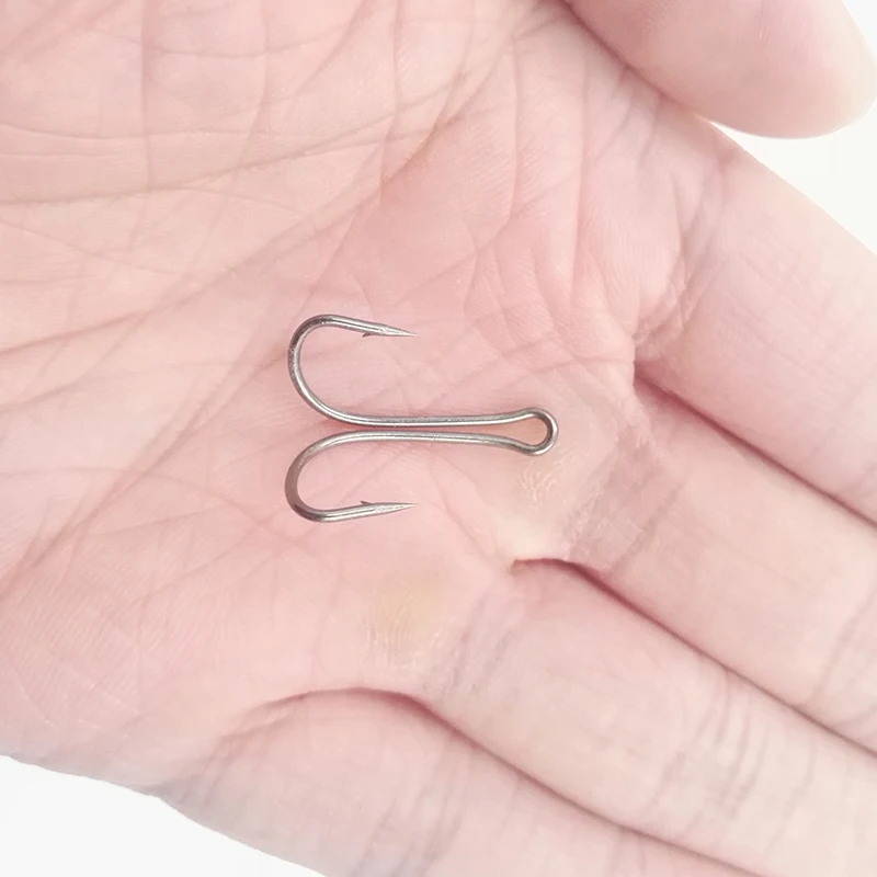 Descripción :20 unids/lote de anzuelos de pesca de acero rico en carbono, gancho de manivela, gancho doble para atado de mosca, señuelo de lubina, pesca, accesorios de alta calidad