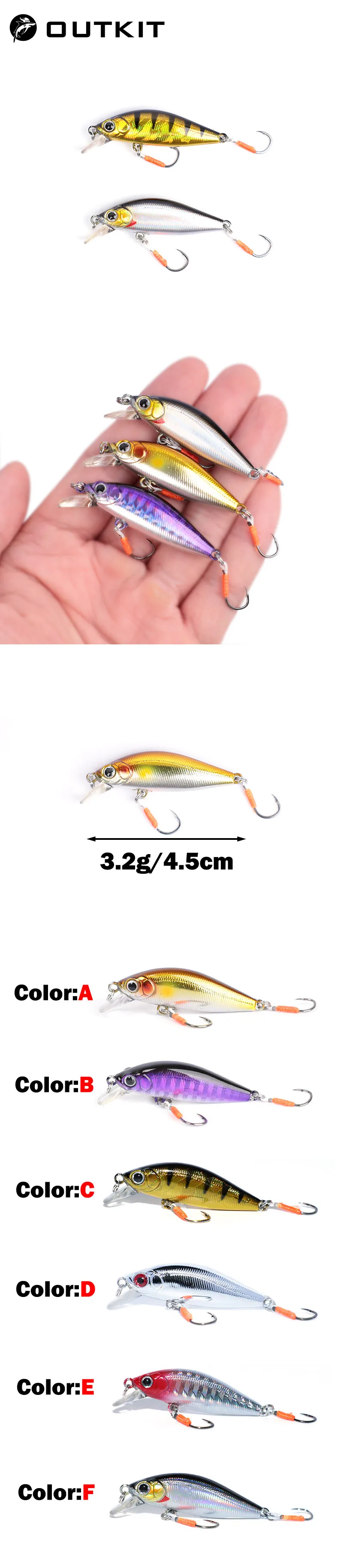 Descripción :OUTKIT 2022 nueva llegada diseño japonés señuelos pequeños señuelo de pesca 3.2g 45mm hundimiento pececillo Mini cebo duro para perca trucha lubina