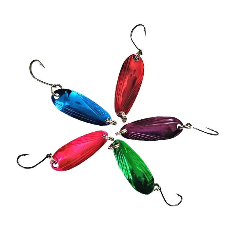 Descripción :Señuelos de cuchara artificiales de 3,3cm y 3,5g, cebo duro giratorio, multicolor, 5 unids/lote, cuchara de pesca, señuelo para trucha, señuelo para lubina