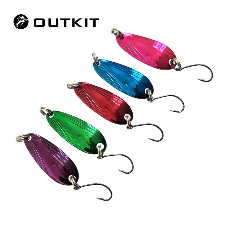 Descripción :Señuelos de cuchara artificiales de 3,3cm y 3,5g, cebo duro giratorio, multicolor, 5 unids/lote, cuchara de pesca, señuelo para trucha, señuelo para lubina
