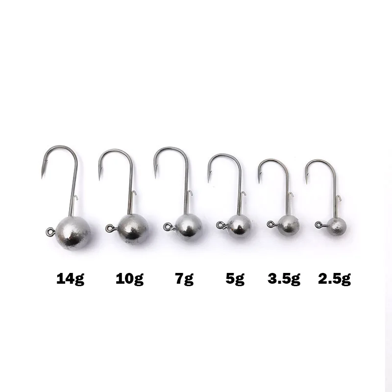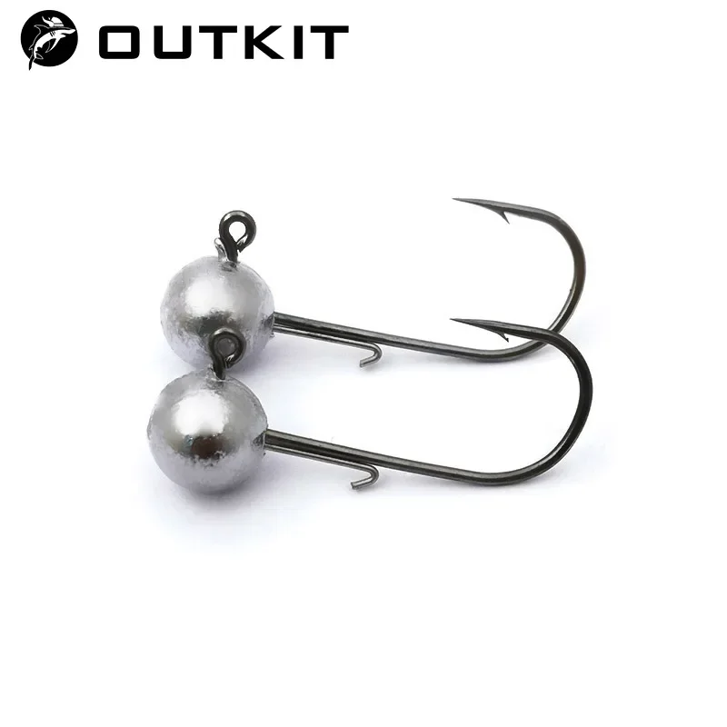 Descripción :OUTKIT, 5 uds., anzuelo de cabeza de NED, 2,5-14g, gancho de cabeza de plantilla de bola redonda, ganchos secundarios de vástago largo sin malezas para pesca de gusano suave