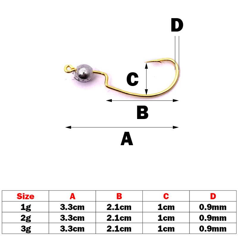 Descripción :OUTKIT Mini anzuelo con cabeza de plantilla, 1g/2g/3g, 10 unids/lote, anzuelo de pesca en roca, señuelo, anzuelo de granizo, gusano suave, accesorios de aparejos de pesca