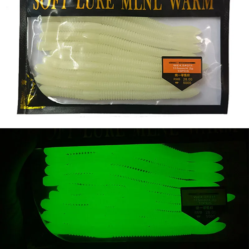 Descripción :OUTKIT Señuelos blandos de pesca 115mm 4,2g 10 Uds cebos de gusano artificiales Señuelos de pesca de silicona Crankbait aparejos de pesca para lubina