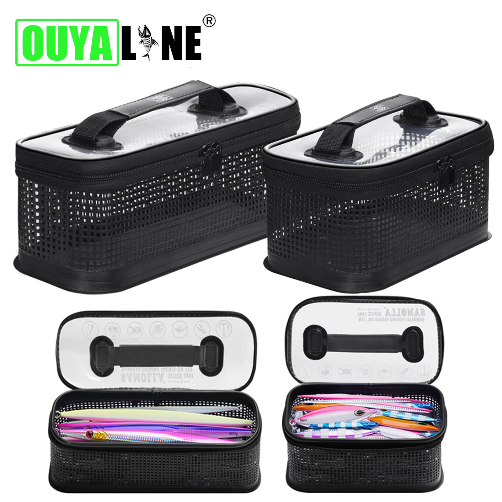OUYALINE bolsa de almacenamiento de equipo de pesca, cubierta superior transparente, utilizada para almacenar y organizar equipos de Camping y pesca al aire libre