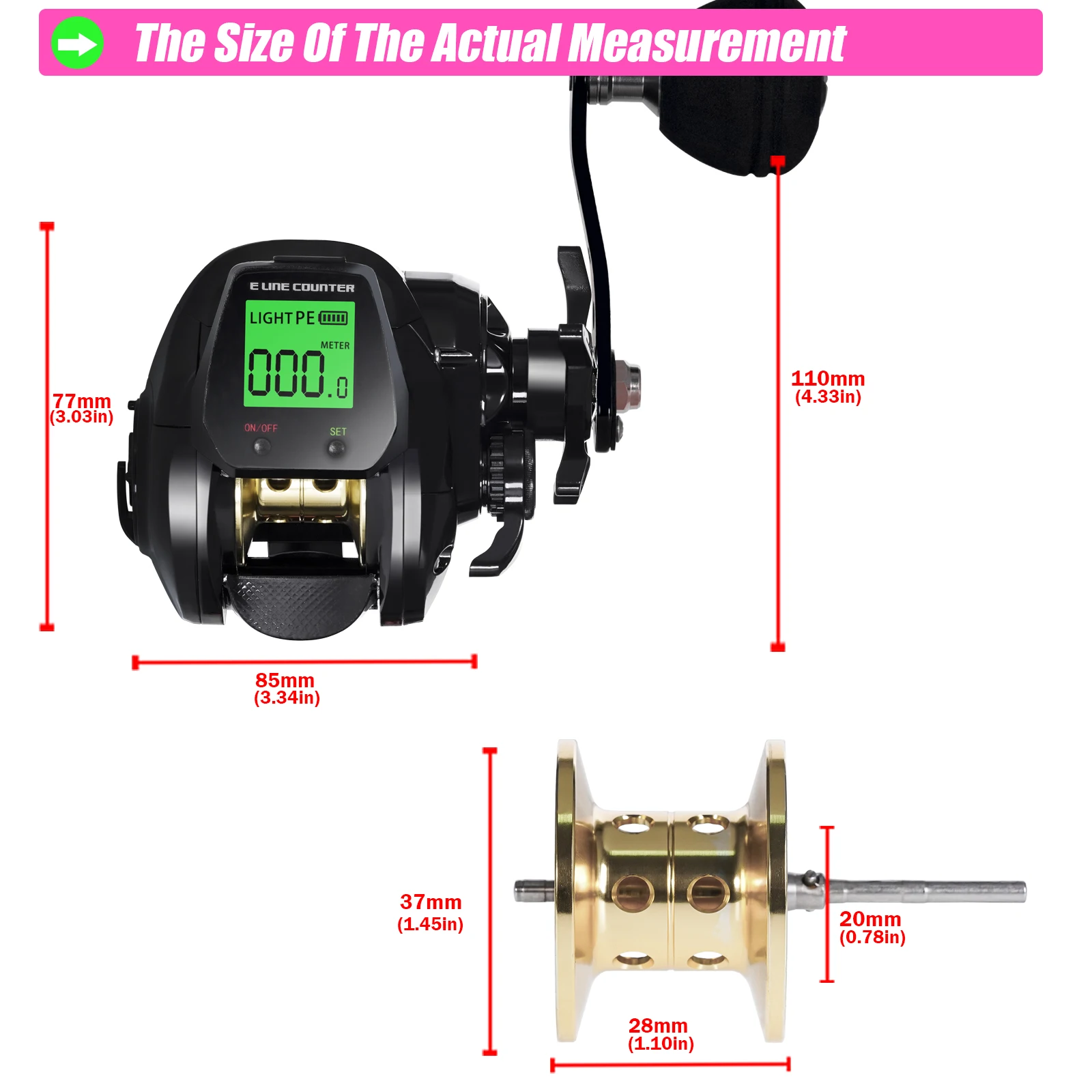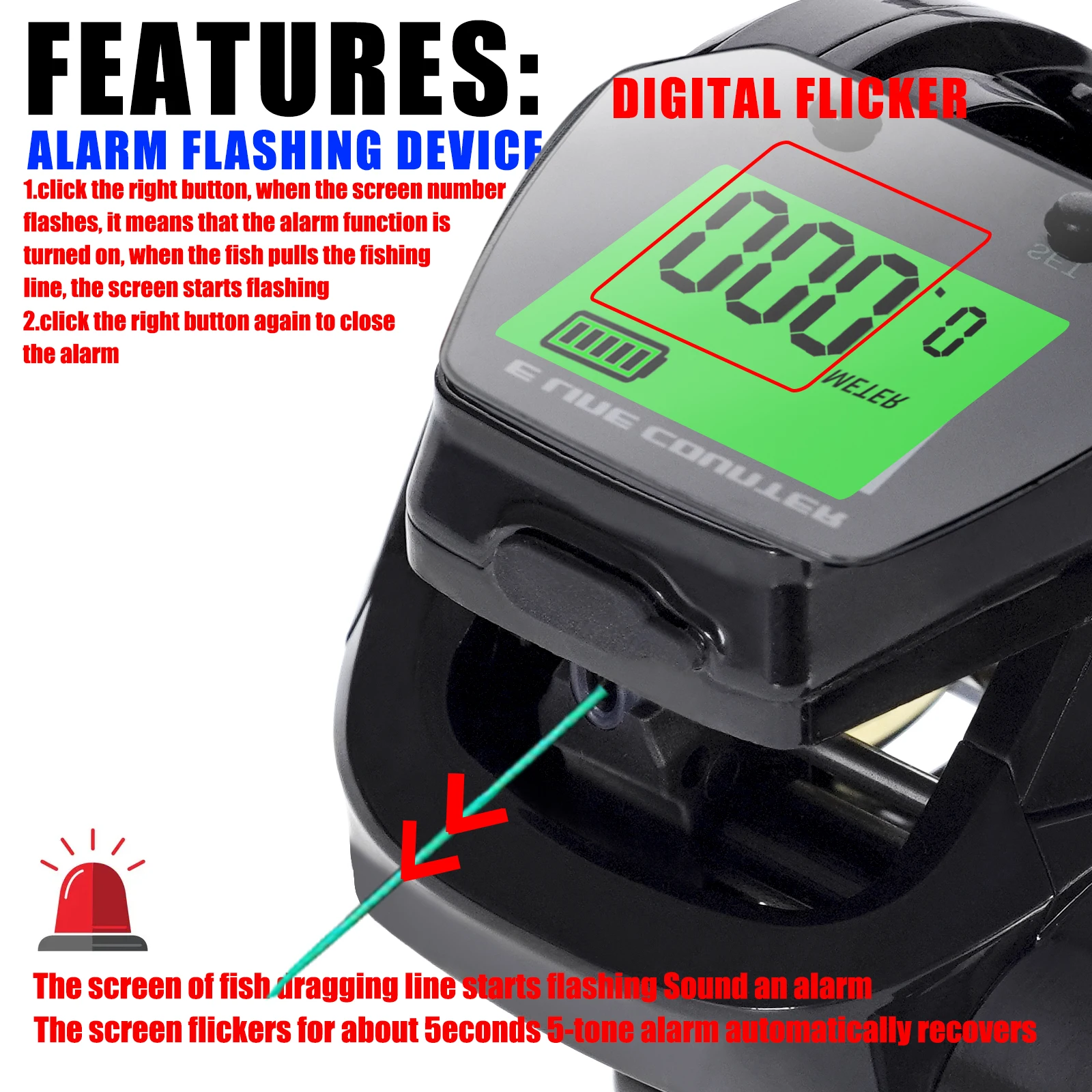 Nueva pantalla grande a prueba de agua pantalla Digital Biatcast carrete gota de agua rueda retroiluminación contando con alarma de fugas puente barco de pesca balsa pesca mar pesca