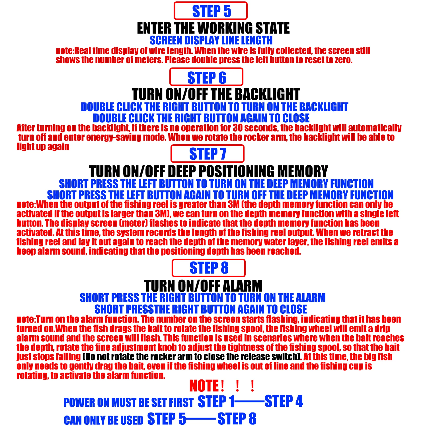 * Alarma de pesca: Cuando se enciende, los números comienzan a parpadear. Haga clic en el botón derecho para activar la función de alarma de peces. En este momento, el número mostrado comienza a parpadear. Cuando el pez muerde el cebo y lo arrastra fuera de la línea, la pantalla comienza a parpadear y suena una alarma de pitido. Después de que la alarma dure 6 segundos, la pantalla vuelve a la normalidad.