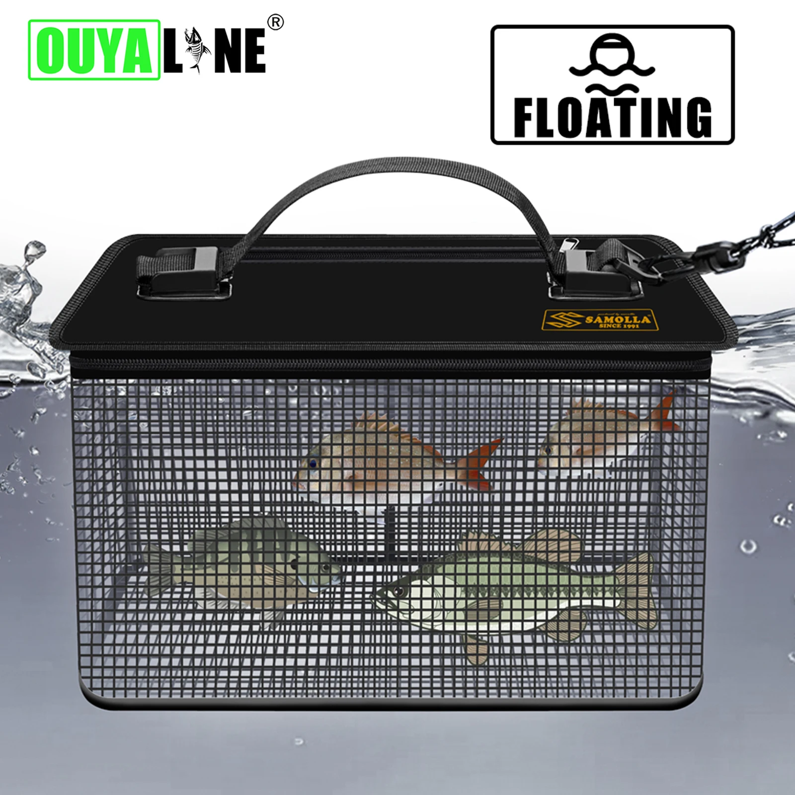 OUYALINE cubo plegable de protección para pesca, caja portátil de secado rápido, equipo de pesca al aire libre, jaula de red de pesca
