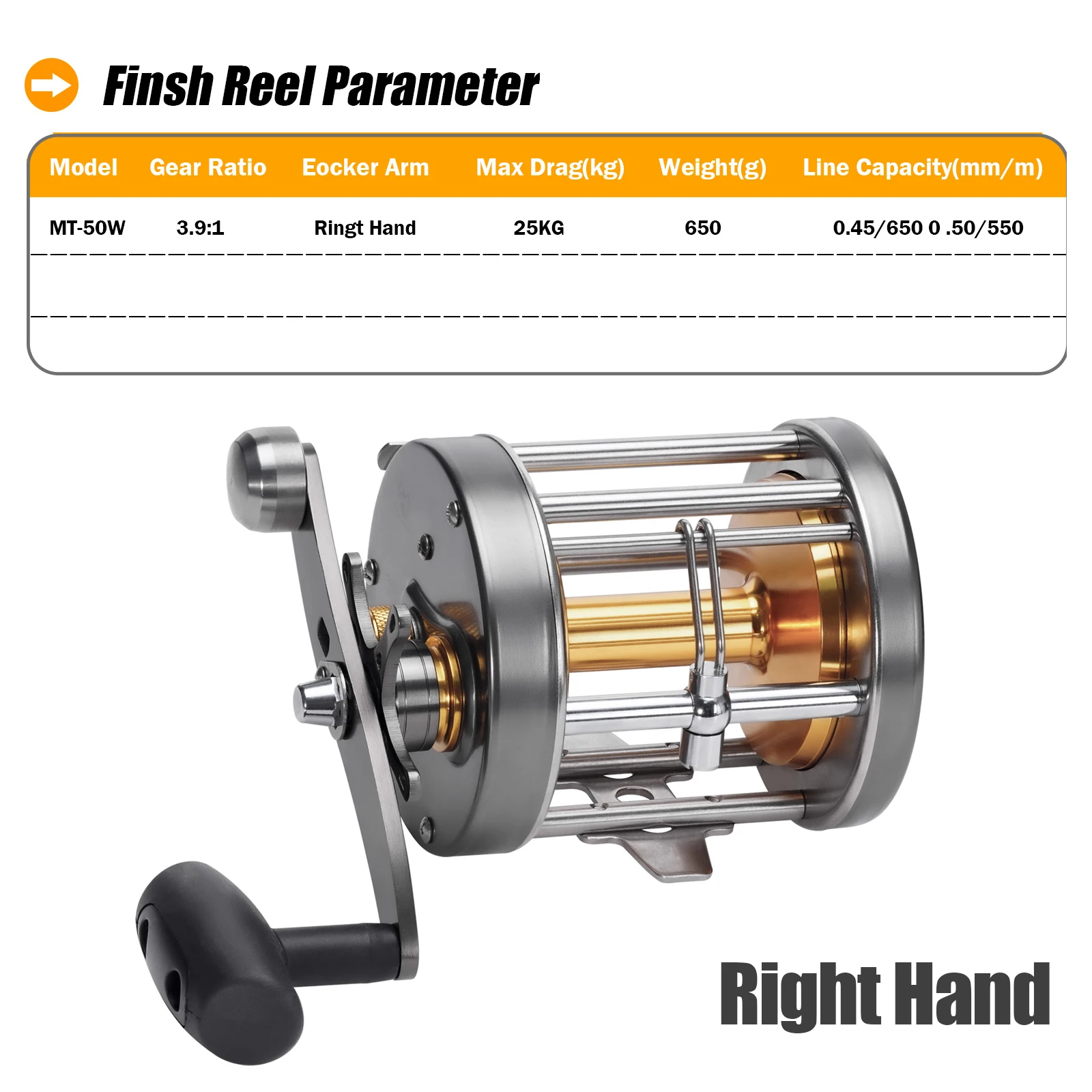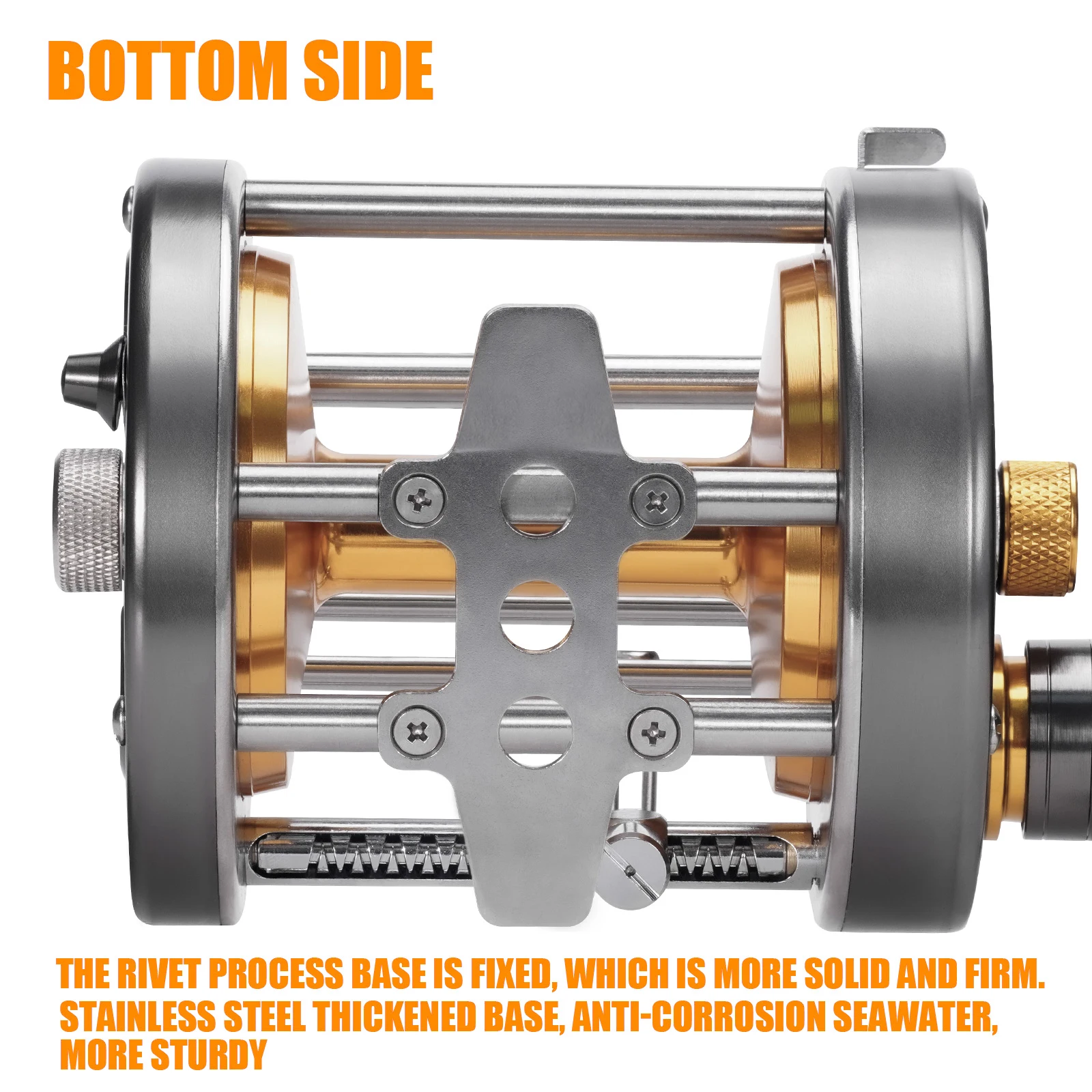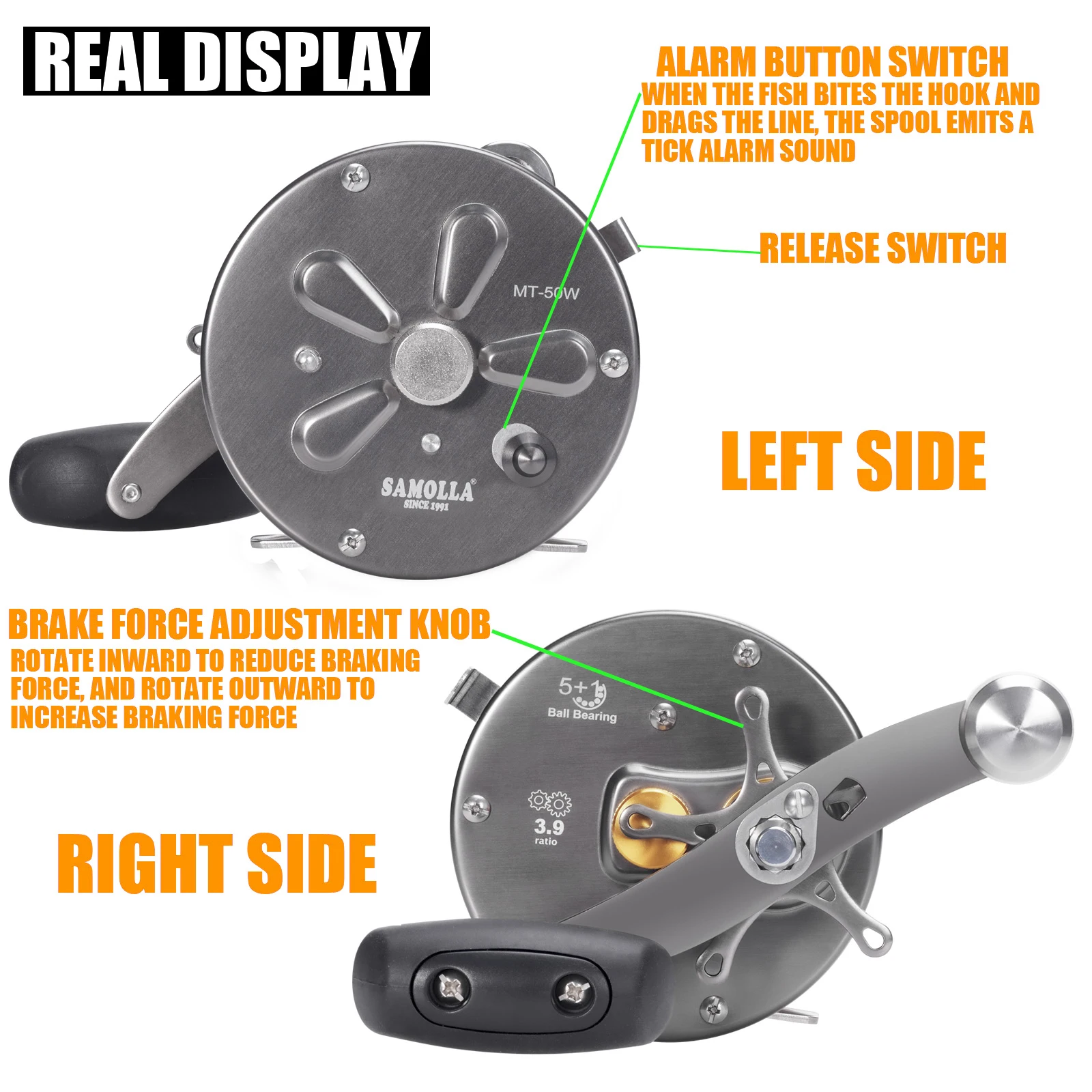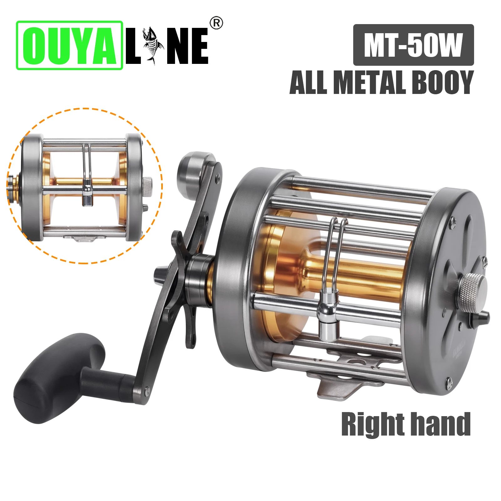 OUYALINE-cuerpo principal de acero inoxidable, accesorio de 50W, ajuste de freno, botón de alarma, carrete de aluminio, buque de pesca de aguas profundas